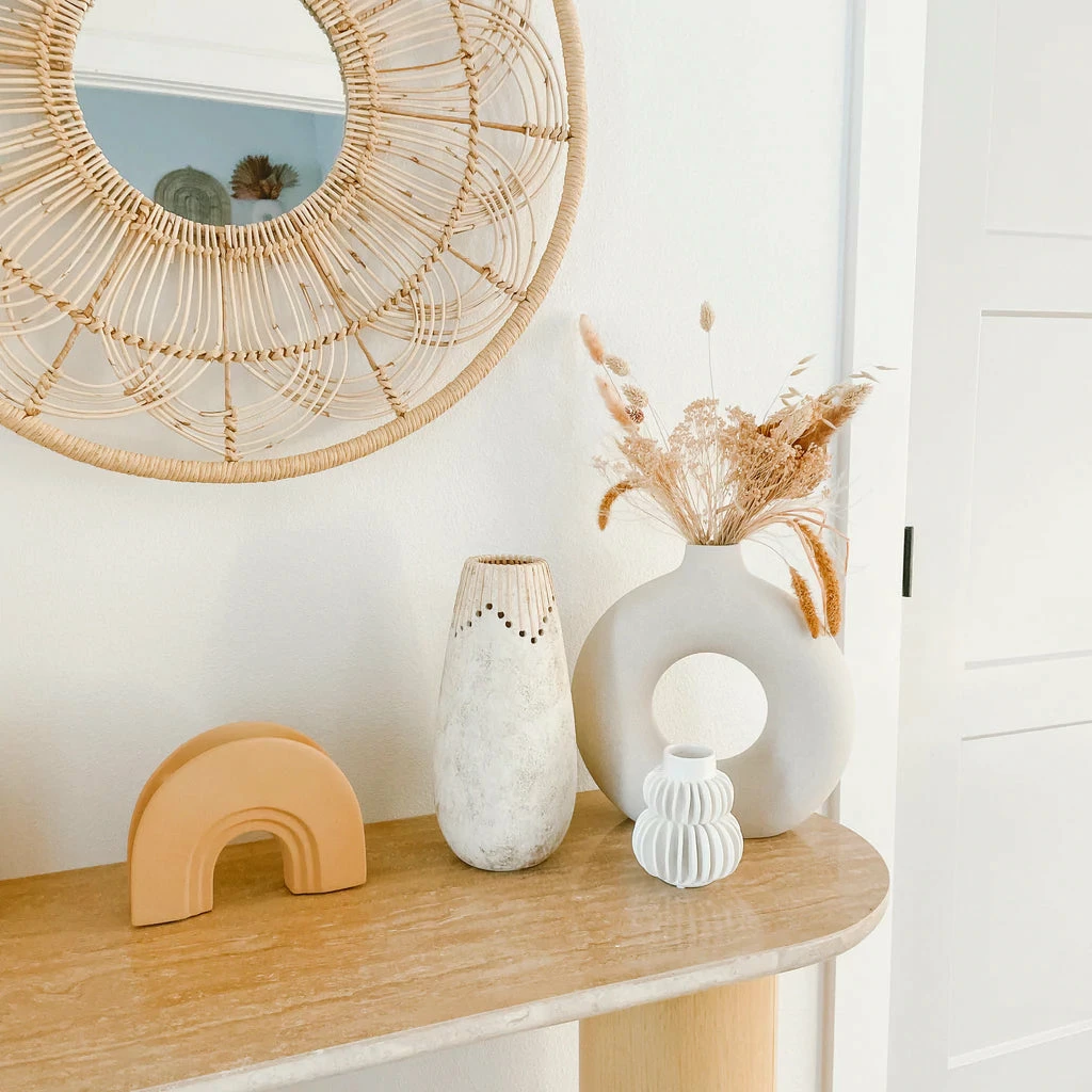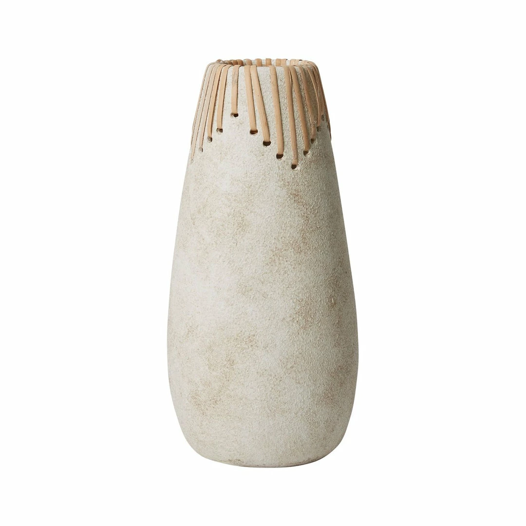 Unique yet classic, the Alaya Vase features a neutral ivory glazed finish, a simple silhouette, and a natural hand-woven design for added interest and style. Reminiscent of ancient pottery with a modern twist, the Alaya Vase is a piece of art for your home or garden.