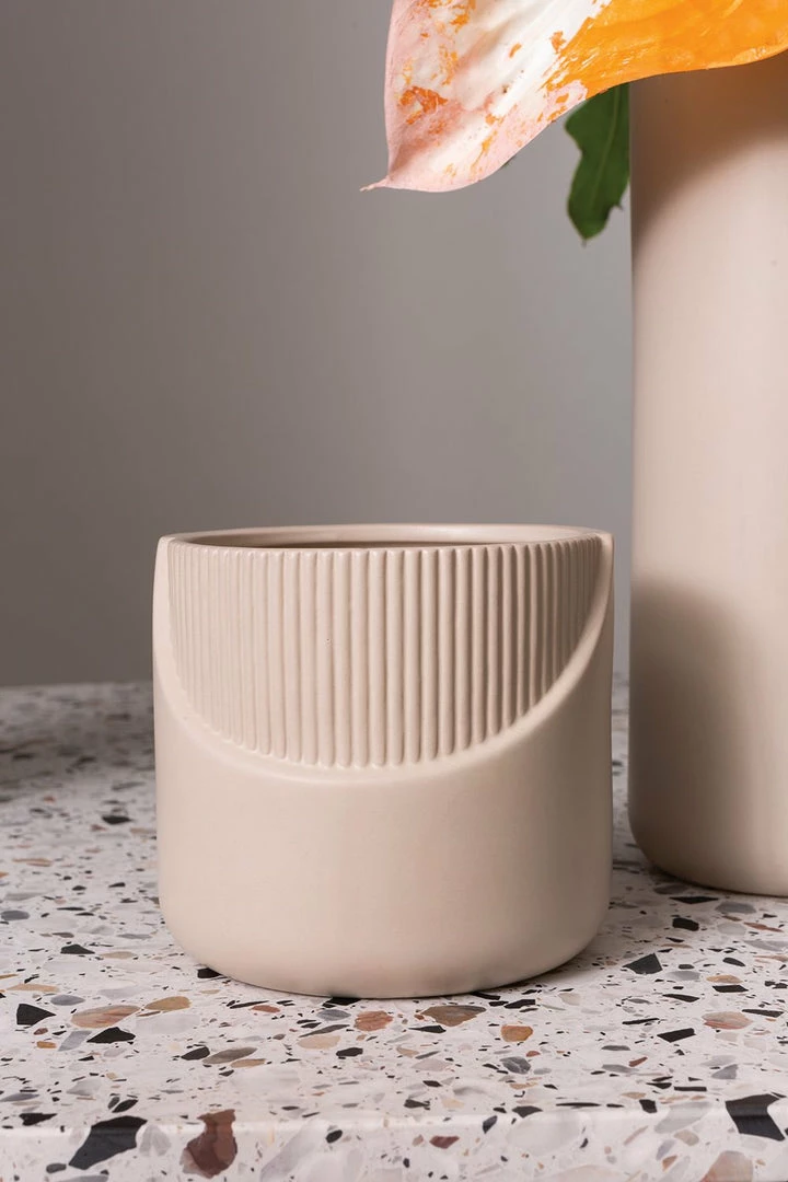 The Halen Pot’s simple lines showcase its cut-out pattern, called out by a clean white glaze. A statement-making pot, perfect for a console table or bookcase.