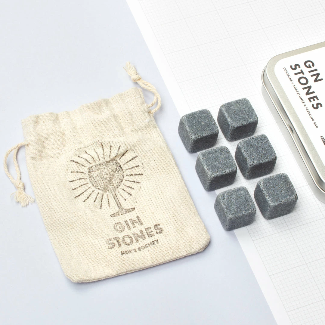 Cocktail Stones are a great alternative to ice. Drop them in your drink, or any tipple, to chill your drink without diluting. Made from 100% Soapstone, which harbours less bacteria and fewer impurities than ice. These stones can be reused time and time again, just wash and freeze again in their bag. Suitable for: The sophisticated drinker. The spirit collector. The man of the world. Contains: Cotton Bag 6 Cooling Stones
