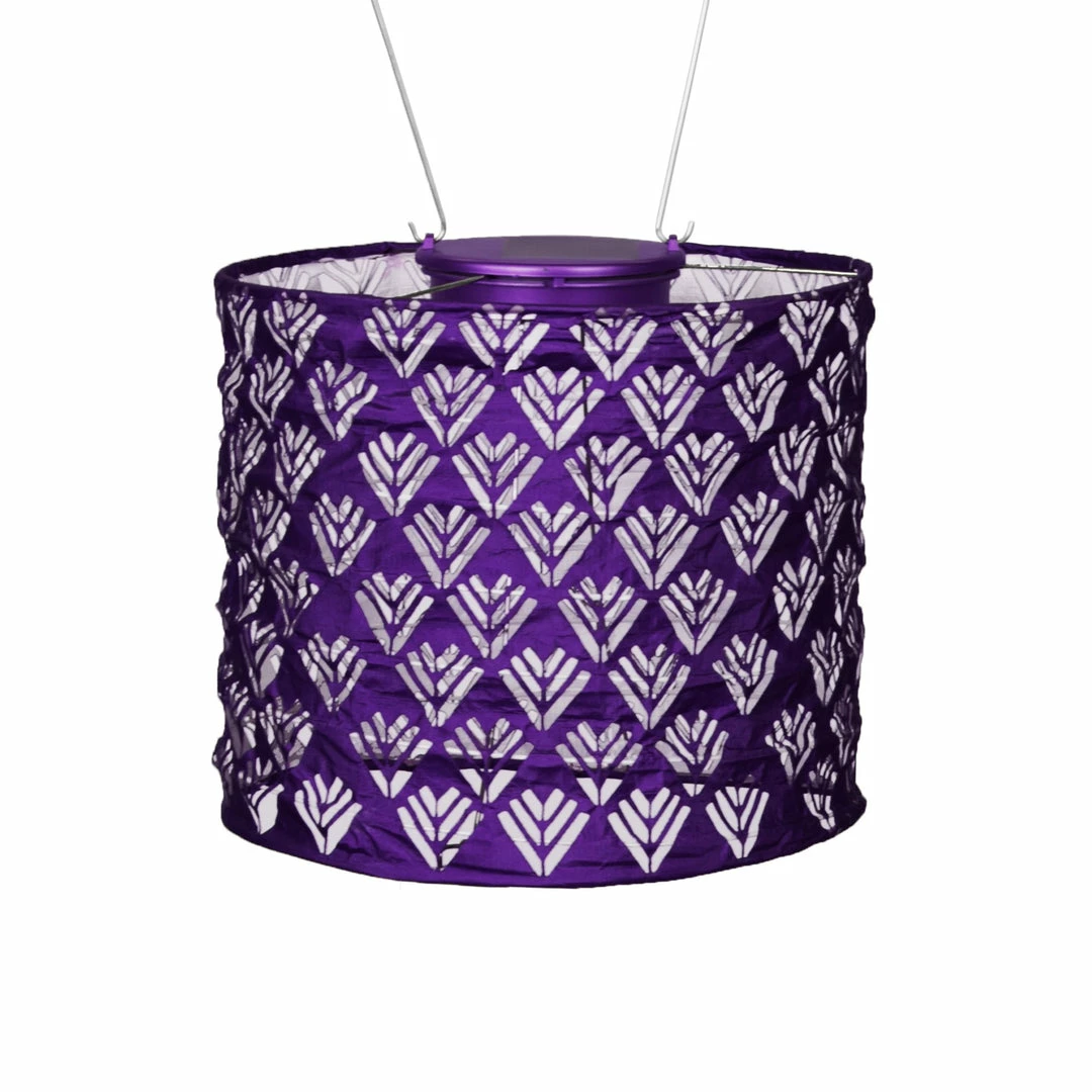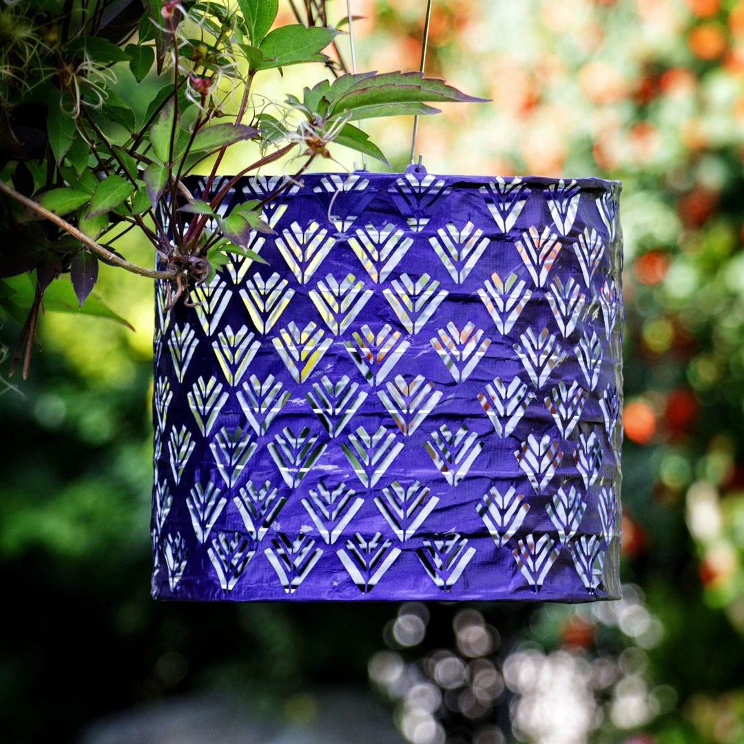 The metallic fabric of the Stella Drum in Copper or Plum shines brilliantly during the day and a high-powered dual LED emits captivating patterns of light by night. Punched with an intricate chevron pattern, this lantern turns on at dusk to create captivating patterns of light each night.