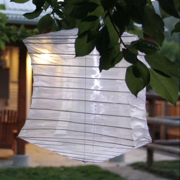 SillnessåÊsolar powered lanterns collect light all day and turn themselves on at dusk to cast a beautiful shimmering glow at night, all without the hassle of electrical cords. Asian style festival lanterns in square and tear dropped shapes pop open for instant elegance. Constructed of a silk-like material, these lanterns create shimmering silhouettes in any outdoor environment. All lanterns are equipped with dual white LED lights, solar panel, AAA rechargeable battery and stainless steel hanging handle. All lanterns are hand-made, each is individual lantern has its own slight variances making each piece unique. The lanternsåÊare created with treated bamboo ribbing.For outdoor use.