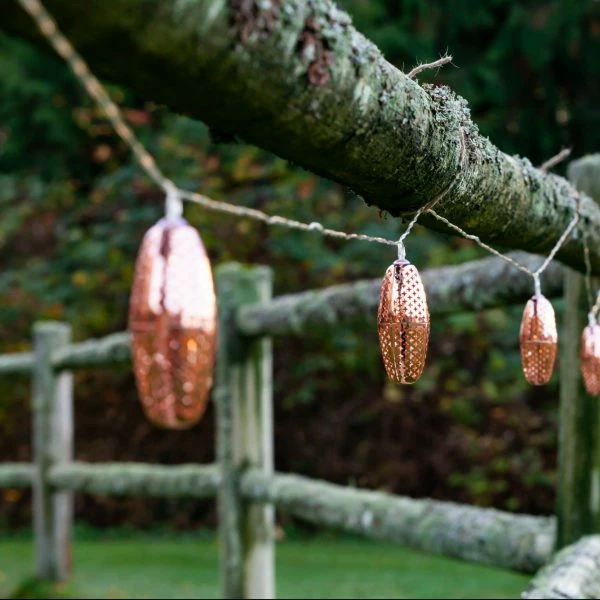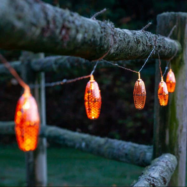 Inspired by the iconic lighting in the bazaars of Morocco, these intricately punched solar string lights bring a sophisticated and elegant look to any outdoor space.