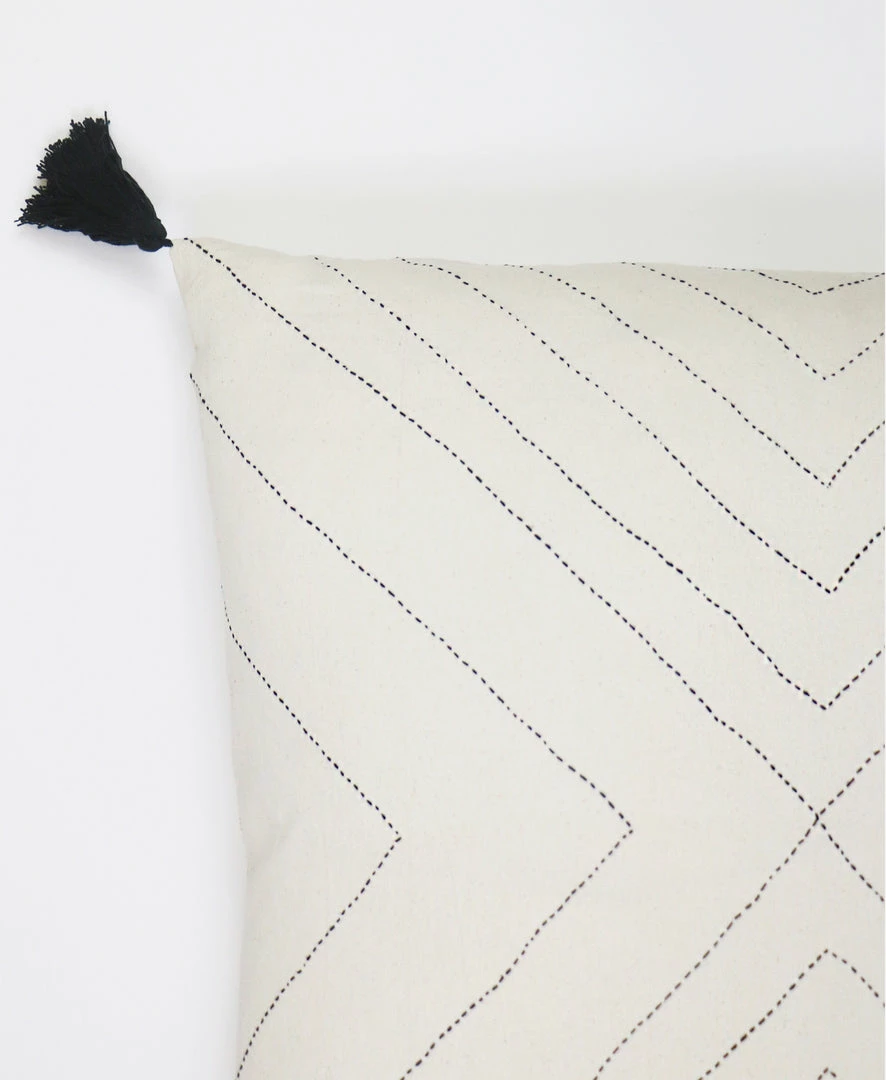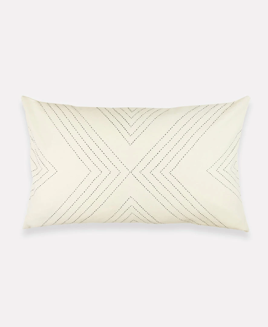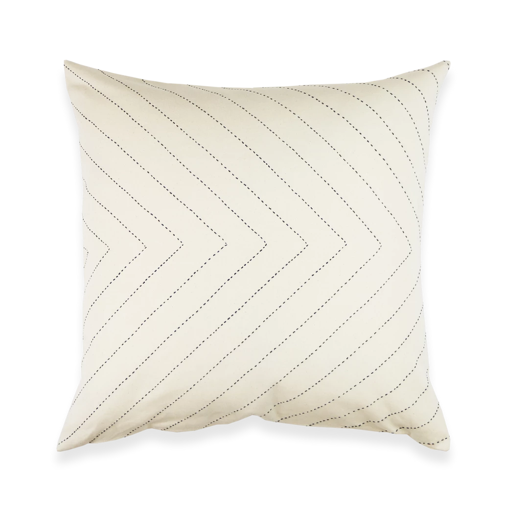The Arrow Stitch Throw Pillow is a simple yet bold accent that tells a story with every stitch. The symmetrical black hand stitched design pops against the contrasting bone white organic cotton canvas, making this decorative pillow the perfect bohemian piece to add to your favorite chair, bed or couch