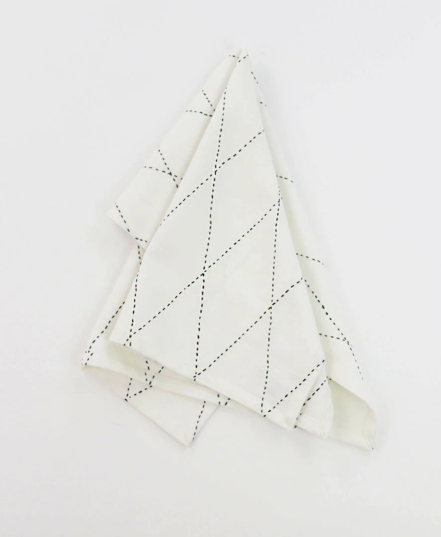 Bone White Tea Towels in grid or diamond embroidery, an adorable addition to your kitchen. Hand-stitched from 1 layer of cotton, this towel features geometric stitches for accent.