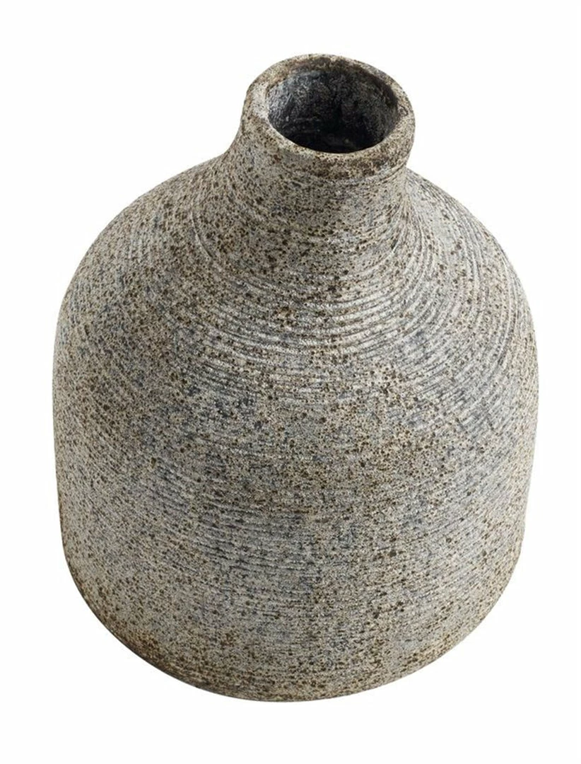 The quirky shape of the Stain vase by Muubs makes this unique object suitable for adding a personal touch to your home décor. The handmade shape and the ridges in the surface that has been made by hand using a comb, makes the vase not only interesting to look at, but also to feel. The exclusive, low-key colour of the Stain vase is suitable for both small bouquets but also to hold a few wild flowers from the garden. Percolation of water may occur. Therefore, do not place the vase on surfaces that does not tolerate water.