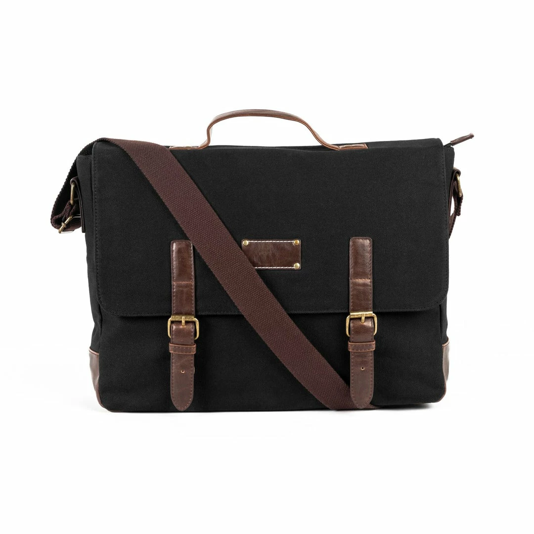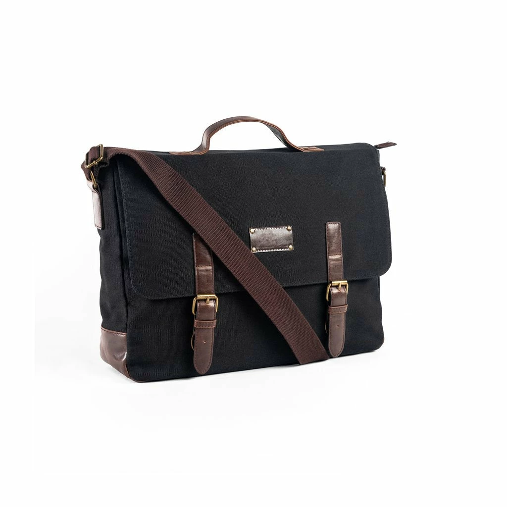 The perfect messenger bag for on the go. This durable canvas material bag features a exterior overflap with button enclosure and an adjustable shoulder-strap for a perfect fit. Interior striped lining with open pockets and a zipper safe pocket.