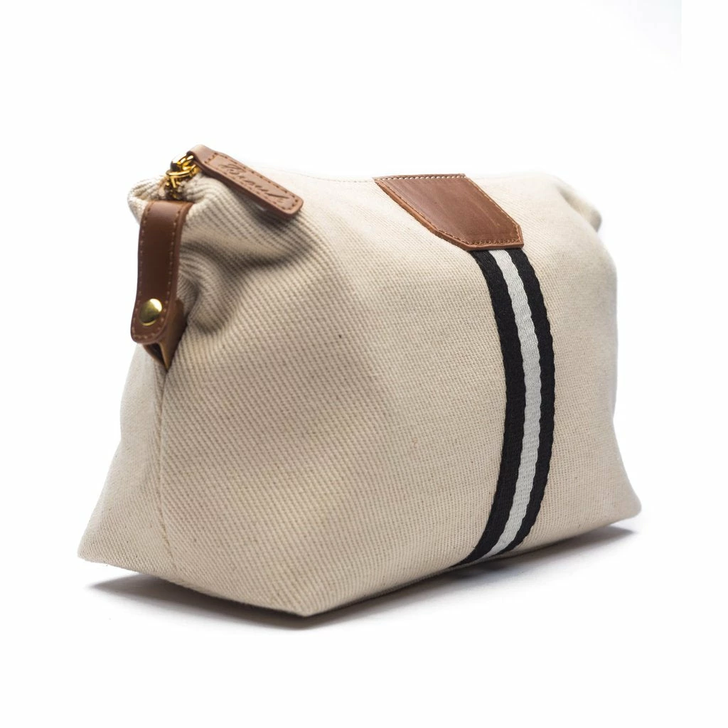 A toiletry bag that feels worthy of your clean up gear. Made from two tone blue canvas and brown vegan leather with interior lining, each bag flattens for easy storage and holds all of the toiletries you’ll need for your time away.