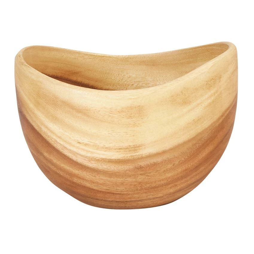 Make the presentation of a salad even more appealing with this decorative acacia wood bowl. It can also be a wonderful piece to fill with mixed nuts, miniature candy bars or other items. The beautiful wood grains will be a welcome addition to the kitchen decor.