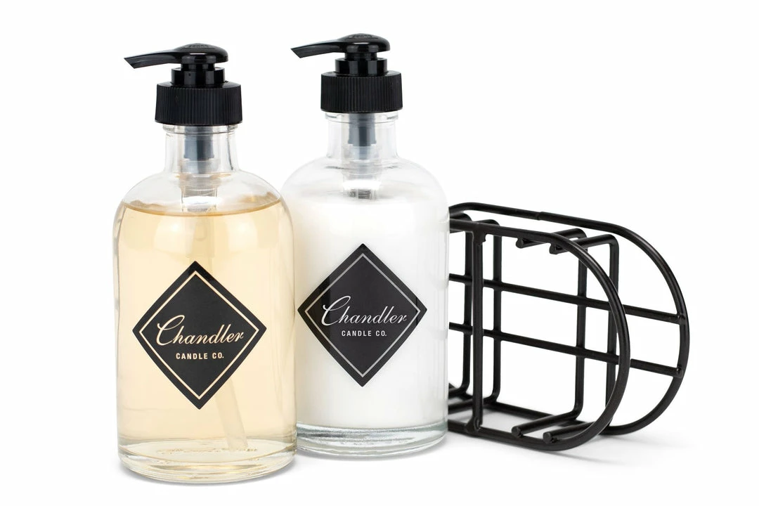 Our liquid hand soap and lotion set will leave hands cleansed, moisturized, and lightly scented with your favorite fragrances.