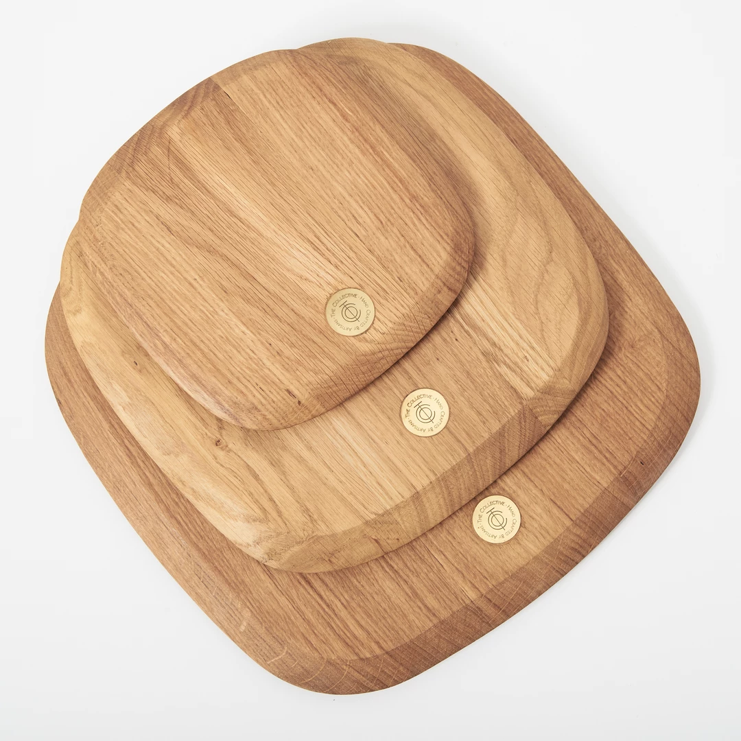 Carved by hand from imported French oak and decorated with a brass logo medallion for a modern look, each board is finished with a food-safe oil to highlight its unique grain. Use it solo, or group with other sizes and shapes of Belfort boards to create an attractive smorgasbord.