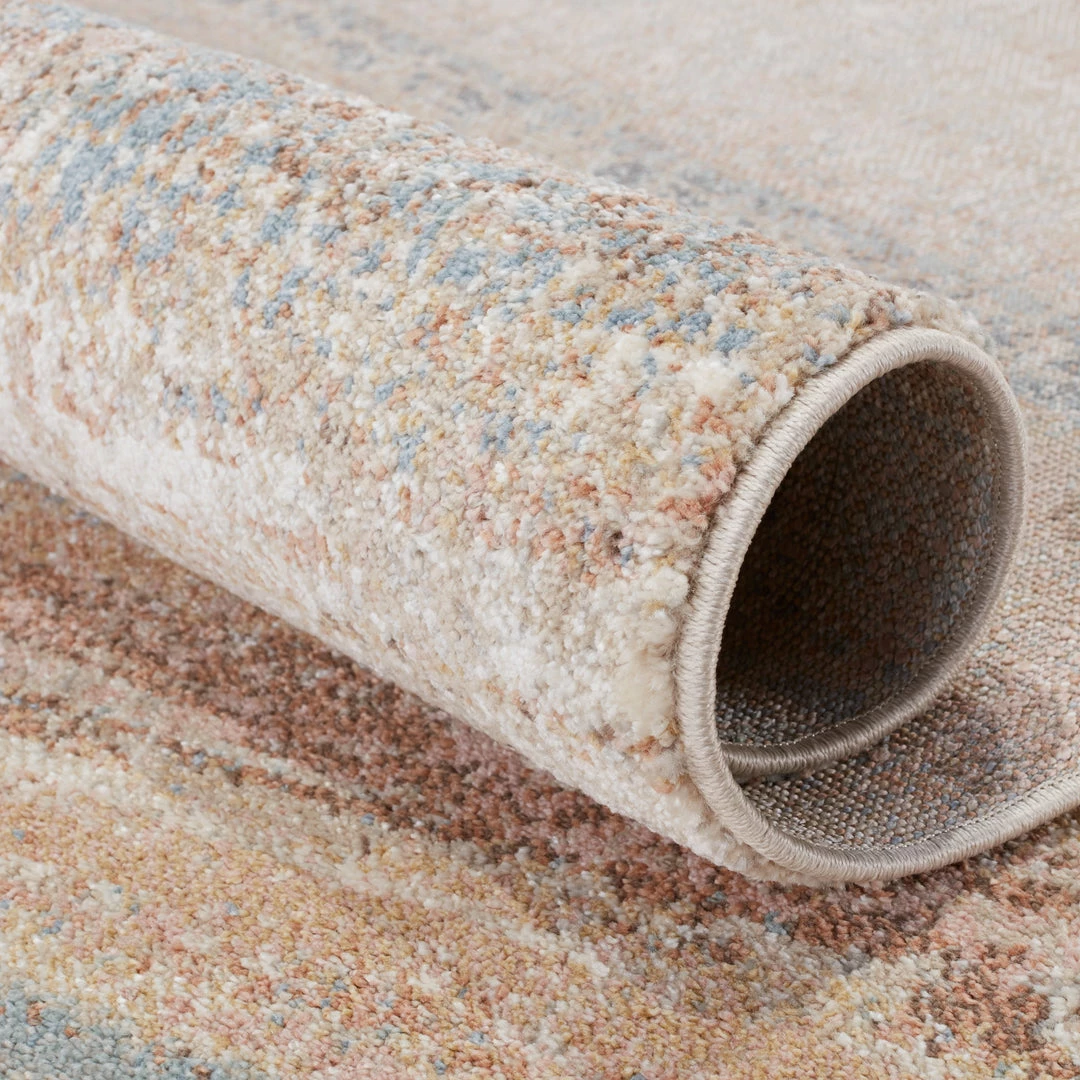 The Abrielle collection features a stunning assortment of traditional designs, updated with beautiful pastel and neutral hues. The Devlin rug grounds any room with an easy-to-decorate and nature-inspired abstract motif. Texture-rich striations in the tan, blue, blush, and taupe colorway emulate the handmade craftmanship of vintage textiles. This durable polypropylene rug is ideal for high-traffic spaces like living rooms, dining areas, and foyers.