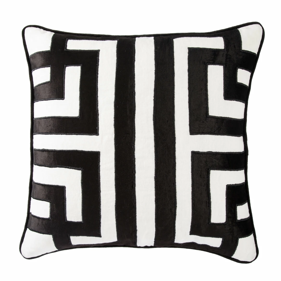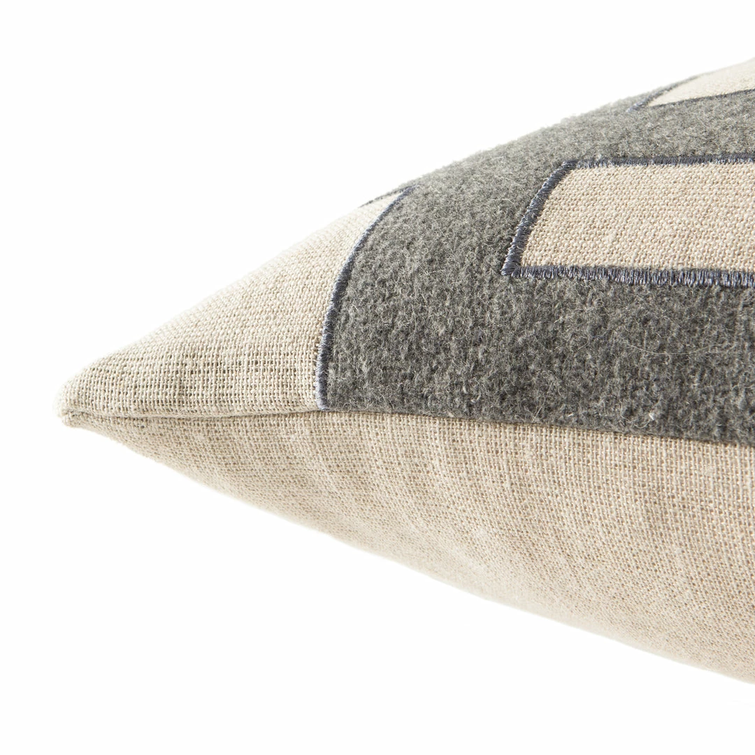 Showcasing a contemporary take on the globally inspired Greek key pattern, this Nikki Chu throw pillow makes a bold statement on sofas and beds. A gray and beige colorway lends a sophisticated touch to this embroidered linen cushion.