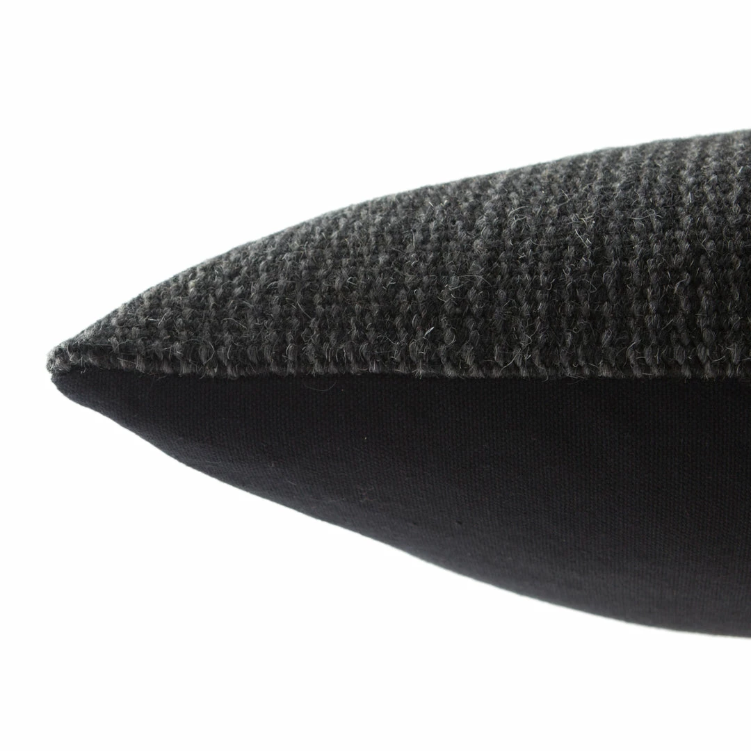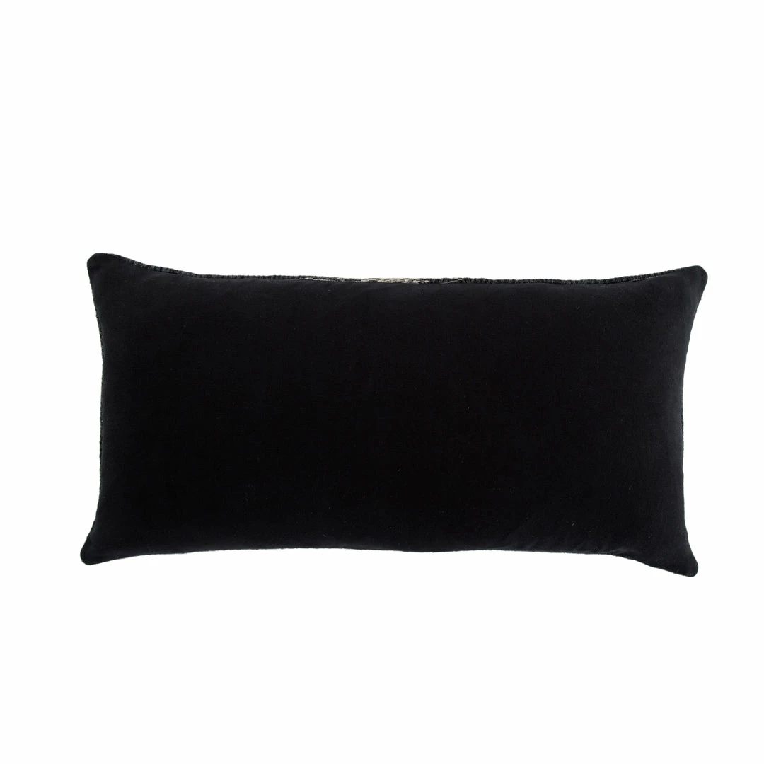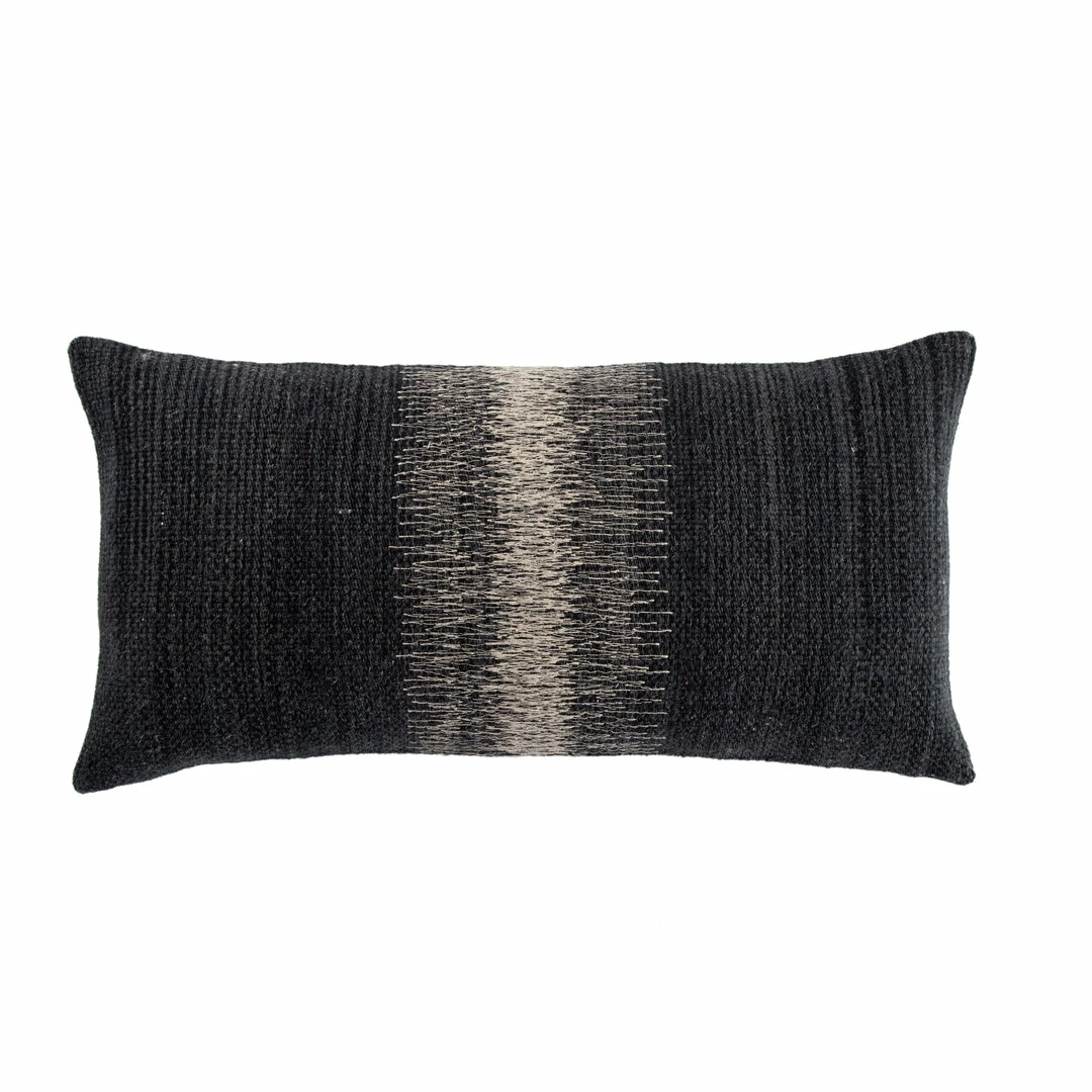 The Mercado pillow collection marries bohemian charm and irresistible texture. The Aravalli lumbar pillow is crafted of wool and cotton, featuring a dynamically embroidered linear design in tones of gray, black, and ivory. This plush accent lends a neutral, rustic look to any style space.