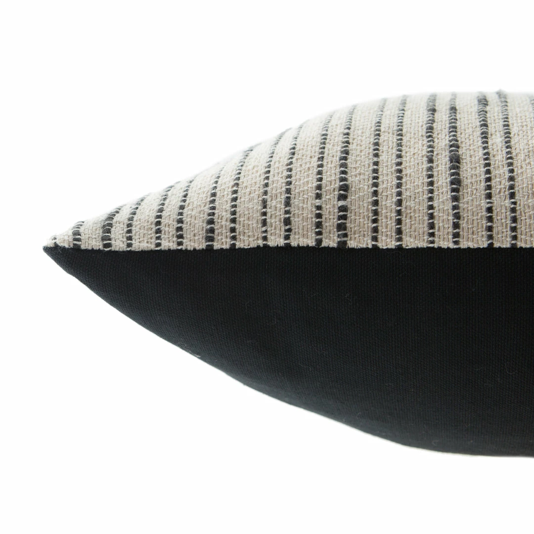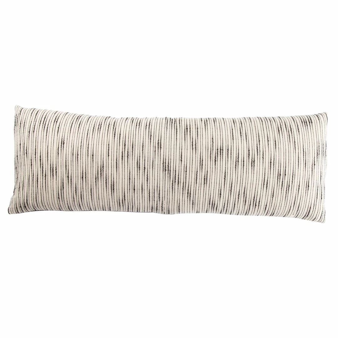 The Mercado pillow collection marries bohemian charm and irresistible texture. The long Linnean lumbar pillow is crafted of soft cotton, featuring a stitched linear design that recalls a traditional raw silk look. In contrasting charcoal gray and ivory, this plush accent complements a range of stylish spaces.