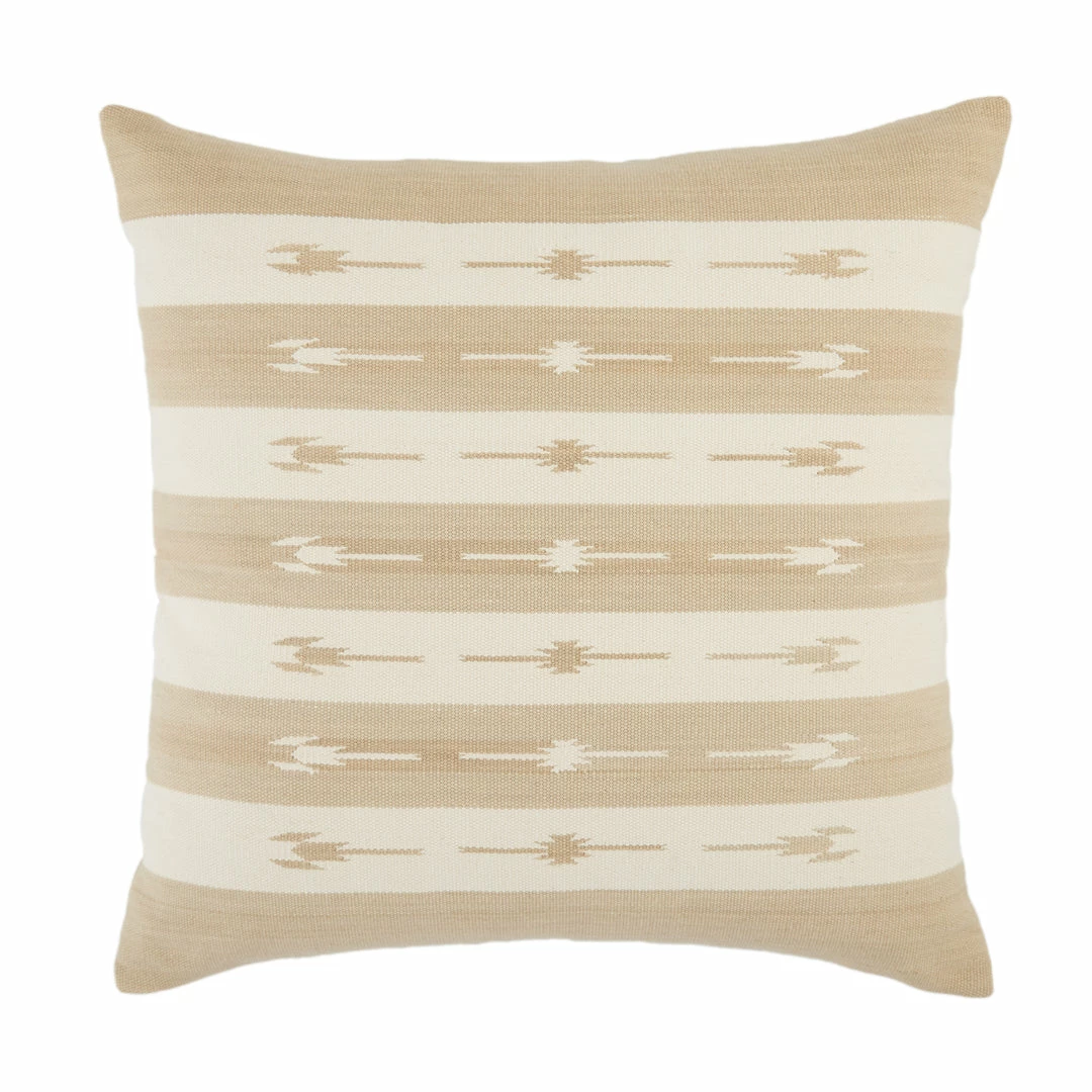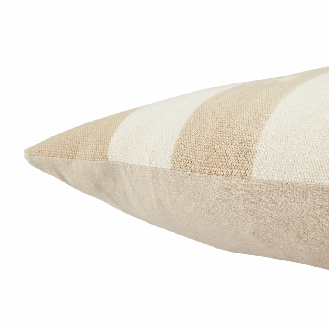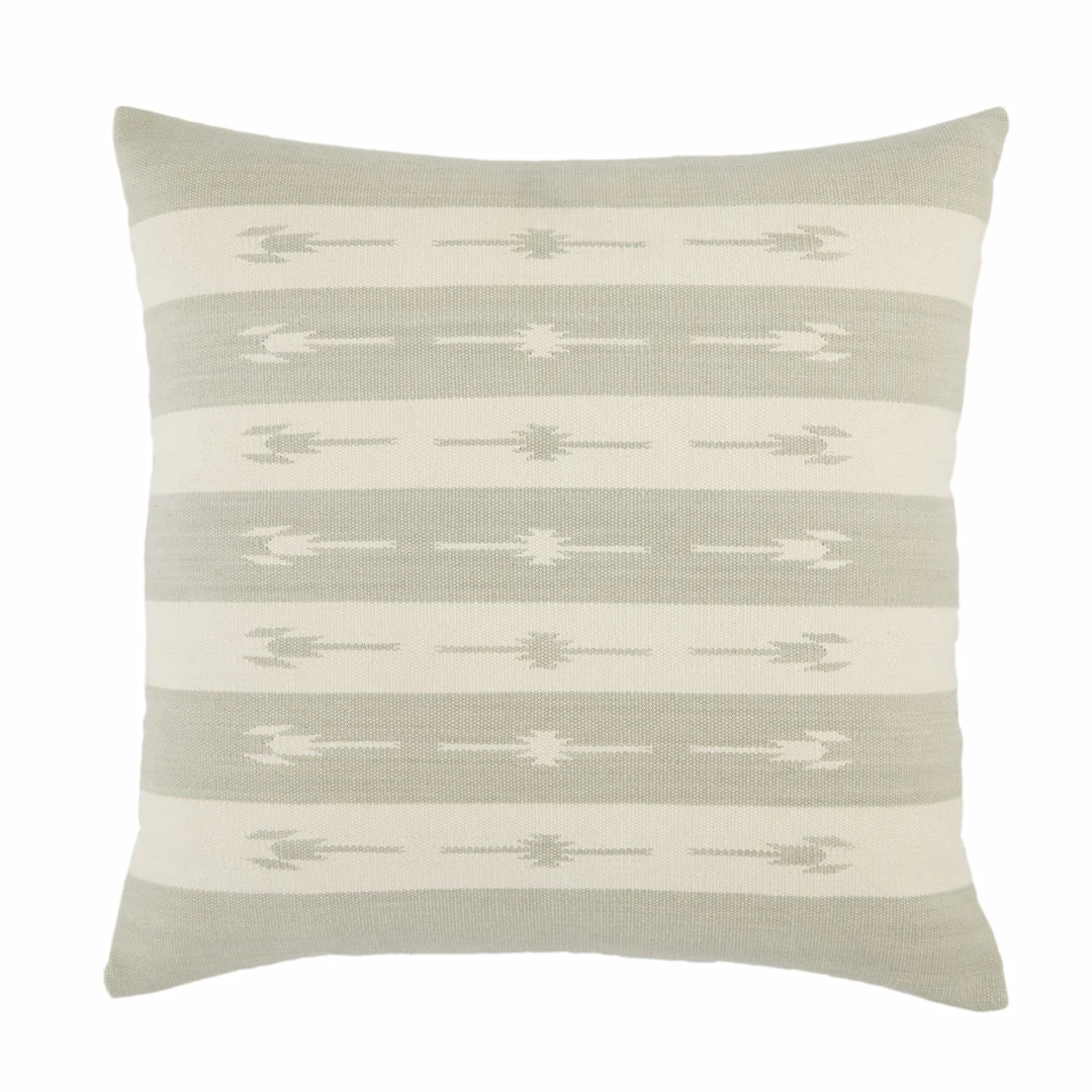 The Emani pillow collection offers effortless, global style in an assortment of chic, desert neutral tones. Woven of natural cotton, the Vanda pillow features a unique and clean-lined stripe design with simple, tribal accents. The light gray and cream colorway of this kilim-inspired pillow is versatile and perfect for any contemporary decorating palette.