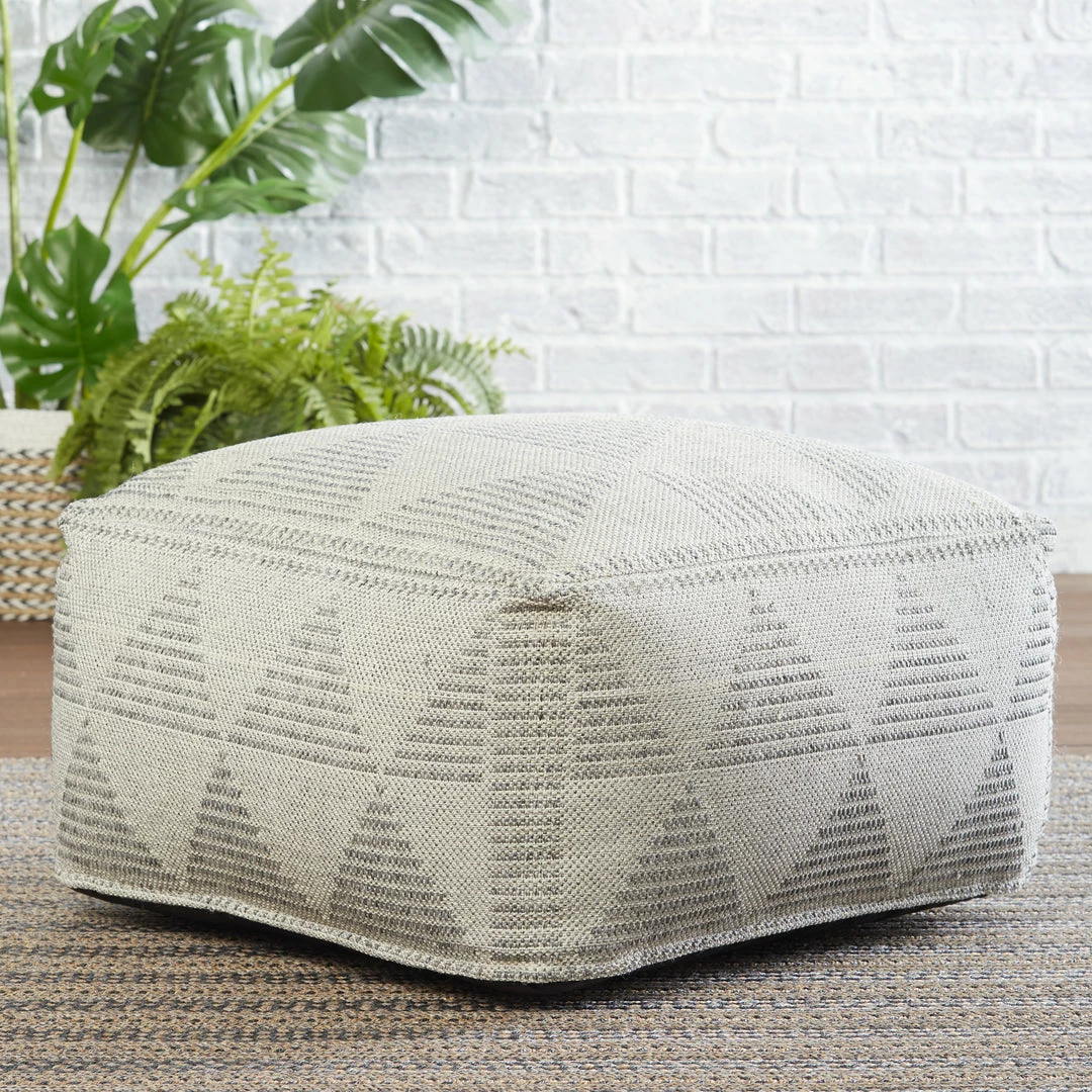 The Fika collection lends a cozy yet modern Scandi vibe with woven texture and a neutral palette. The Alrik pouf showcases a geometric pattern in versatile gray and cream tones. This accommodating ottoman is crafted of durable polypropylene for a long-withstanding accent in any living room or patio area.