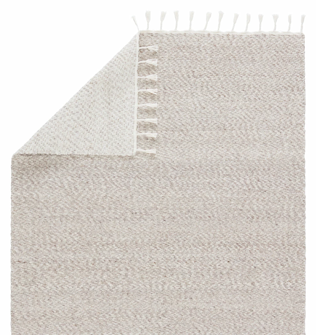 The flatwoven Majorca collection brings the relaxed and textured look of a natural weave to the outdoors. The Adria area rug provides a warm and grounding accent to patios, kitchens, and dining rooms with durable PET yarn. The neutral cream and light gray colorway lends a refreshing, airy vibe, and the braided fringe adds a global touch.