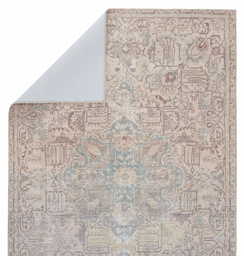 The Kindred collection melds the timelessness of vintage designs with modern, livable style. In subdued tones of tan, beige, gray, and blue-green, the statement-making Parisa rug ground spaces with luxe appeal and a classic center medallion motif. This low-pile rug is made of soft polyester and features a stunning, Old World-inspired digitally printed design.