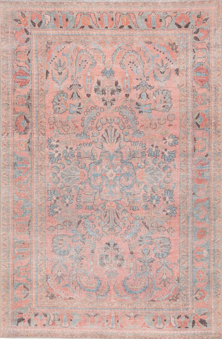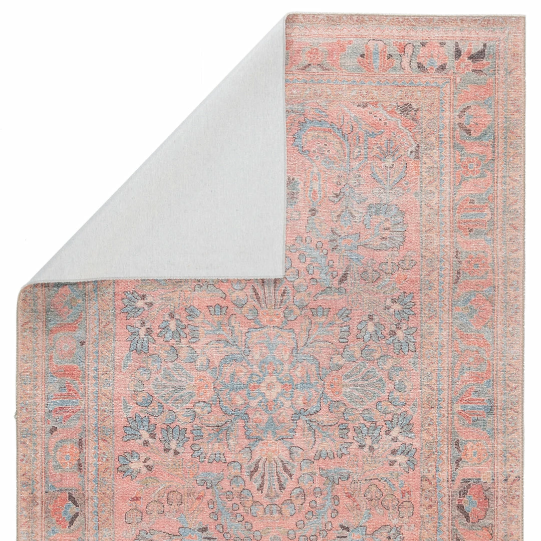 The Kindred collection melds the timelessness of vintage designs with modern, livable style. The Pippa area rug boasts a whimsical medallion with floral accents and contemporary pink, sky blue, and gray colorway. This low-pile rug is made of soft polyester and features a one-of-a-kind antique rug digitally printed design.