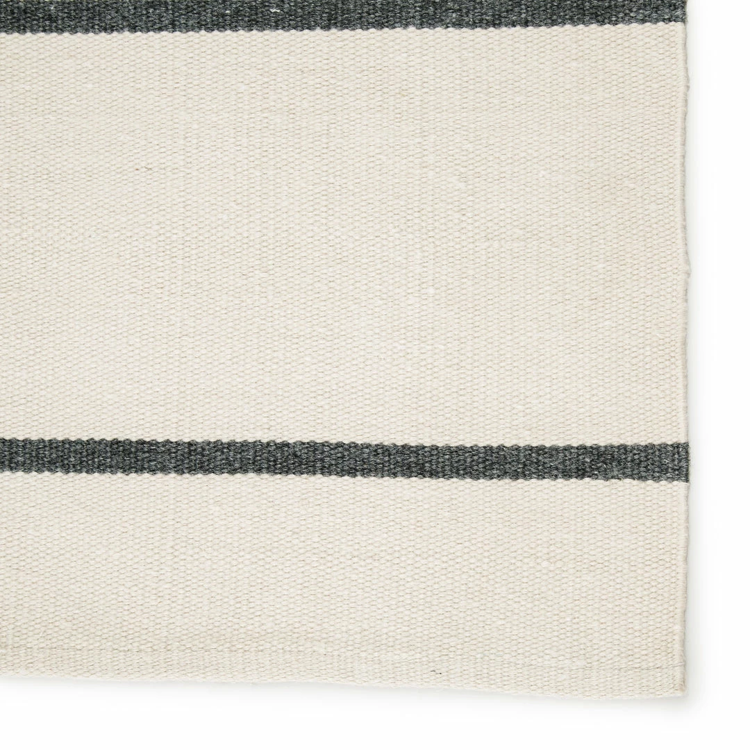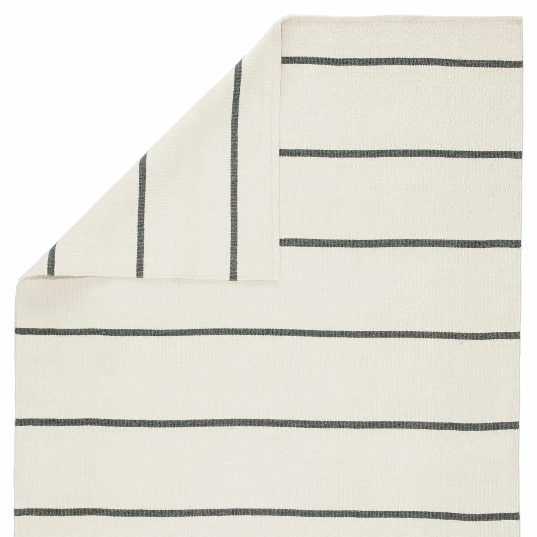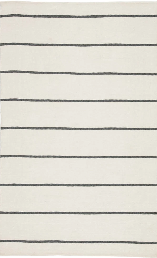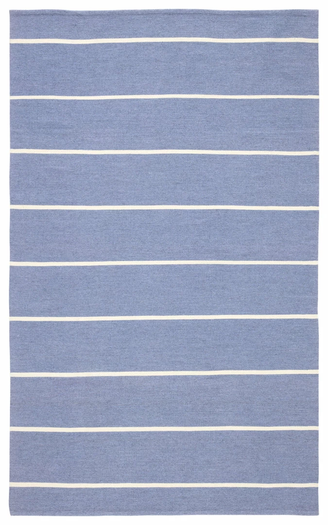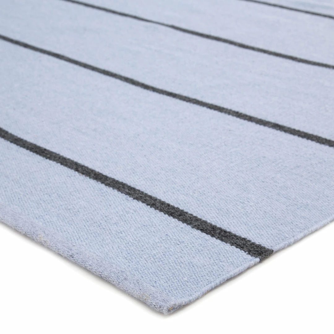 Relaxed and sophisticated in the same moment, the Lanai collection is a chic assortment of nautical designs. The pin stripe Corbina area rug infuses both indoor and outdoor spaces with a versatile colorway of blue and charcoal. Hand woven of eco-friendly PET yarns, this durable rug is easy to clean and perfect for high-traffic areas.