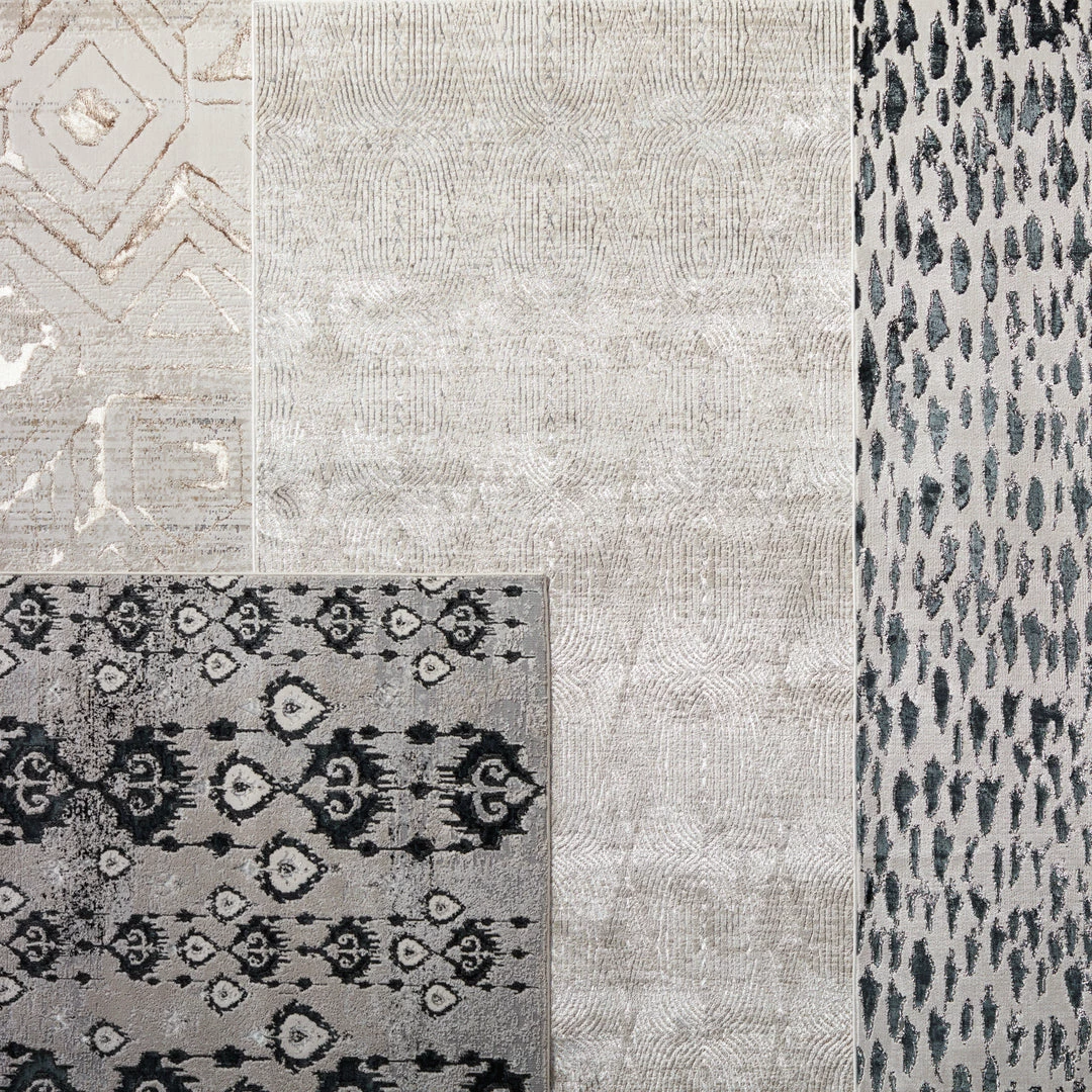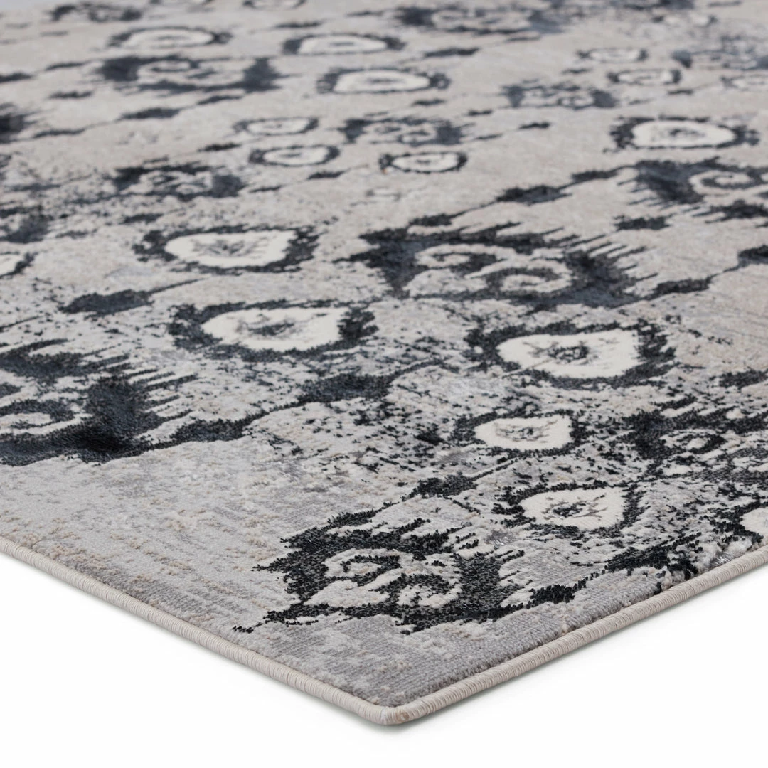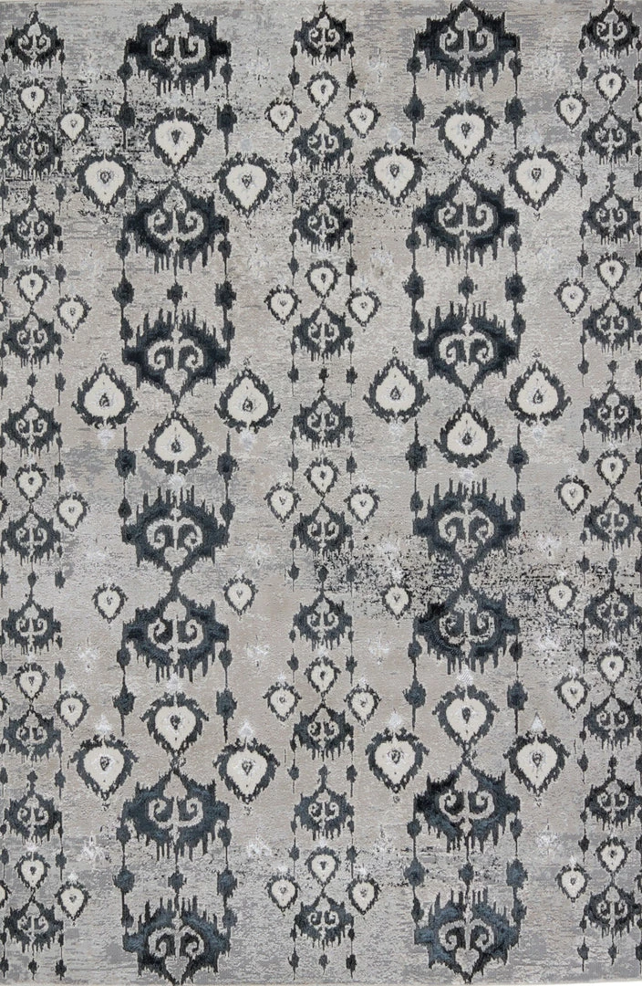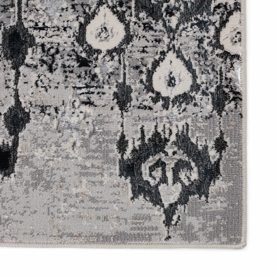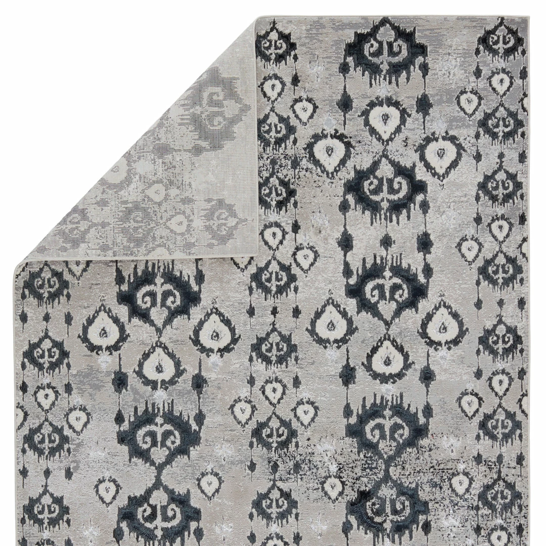 The Malilla by Nikki Chu showcases a glamorous, eye-catching sheen that boldly complements the globally inspired motifs. The captivating ikat design of the Inigo rug anchors a space with patterned panache, while the neutral colors of dark blue, gray, ivory, and silver offers a grounding tone to any style decor. This power-loomed rug features metallic polyester fibers blended with stain-resistant polypropylene for a brilliant luster from various perspectives.