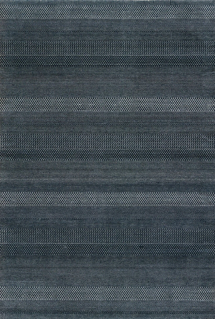 The Merritt collection brings texture to any room with fine-lined grass patterns and on-trend colorways. The plush and luxuriously dense wool and viscose pile emulates a handmade feel, while the precision of the power-loomed construction proves eye-catching and impressively rich with detail. The Adler rug boasts a deep blue and ivory colorway for a rich and moody addition to any room.