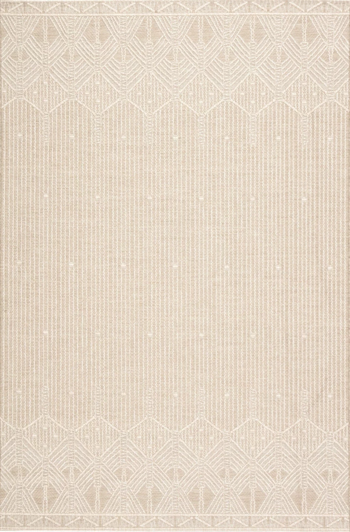 The Monteclair collection brings the classic sisal look to outdoor spaces and high-traffic indoor areas. Inspired by Art Deco details, the Belvidere area rug melds style and originality with a light and airy cream and beige palette. Made of durable polypropylene and polyester, the stunning linear motif lends elegant appeal and unique texture.