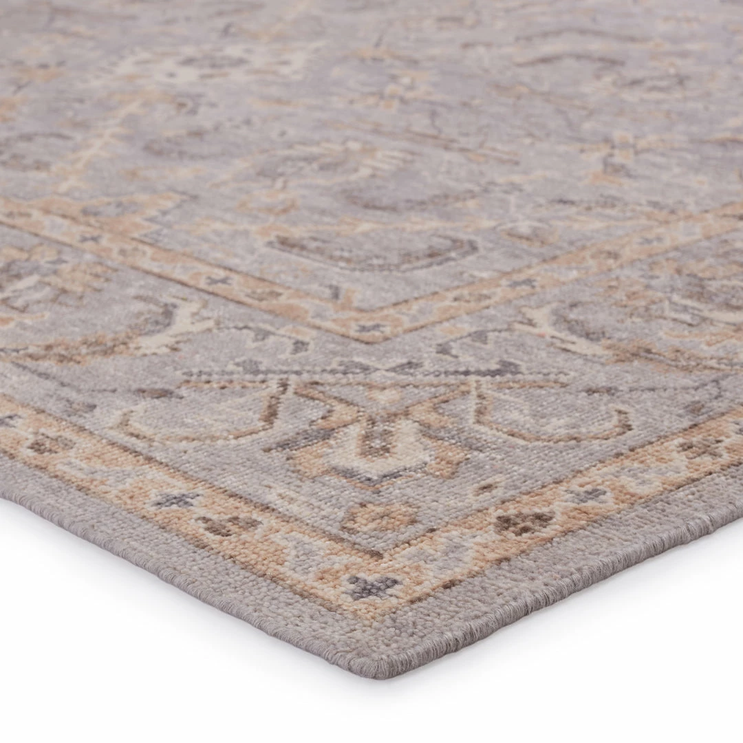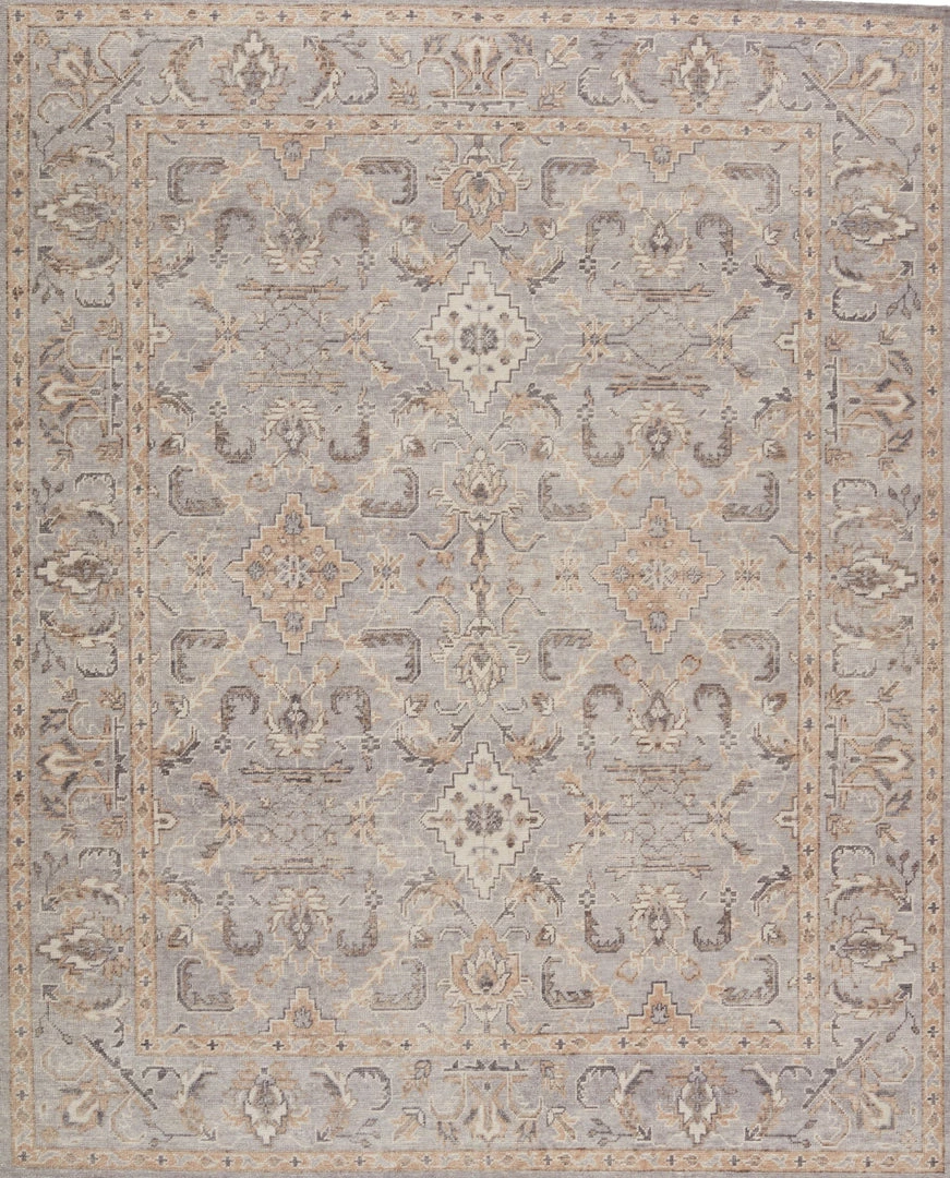 The Revolution collection is inspired by traditional style and beautifully detailed antique textile designs. The hand-knotted Wyndham area rug showcases a classic motif in neutral tones of gray and warm tan. The elegant border effect frames the ornate trellis design of this artisan-crafted wool rug.
