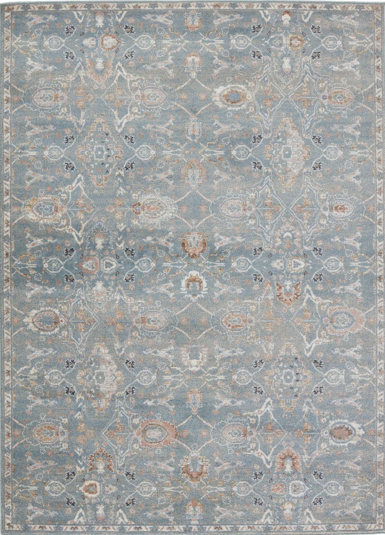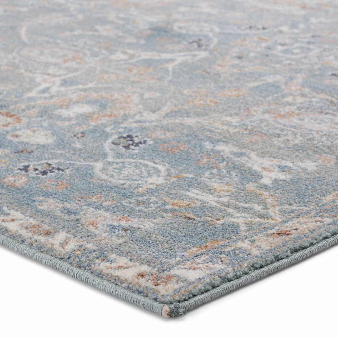 The Abrielle collection features a stunning assortment of traditional designs, updated with beautiful pastel and neutral hues. The Etienne rug grounds any room with an easy-to-decorate ornamental motif. Texture-rich striations in the blue-gray, tan, and ivory colorway emulate the handmade craftmanship of vintage textiles. This durable polypropylene rug is ideal for high-traffic spaces like living rooms, dining areas, and foyers.