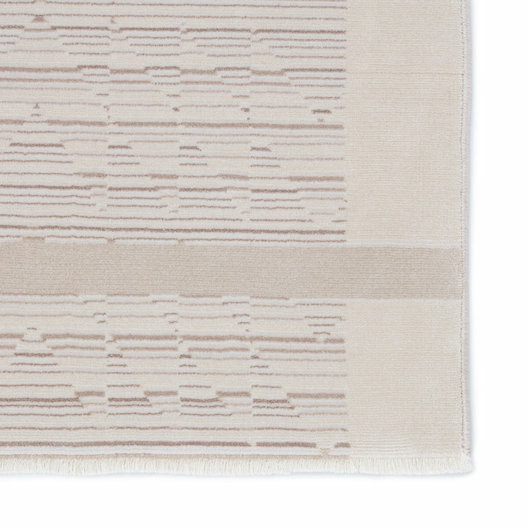 The simple and stylish Aura collection boasts a complementary mix of neutral tones combined with modern, linear motifs. The versatile Linus rug grounds any space with a unique linear pattern and tonal cream and light taupe hues. Soft and lustrous, this chameleon-like design emulates the timeless look of a hand-knotted rug, but in an accessible polyester and viscose power-loomed quality.