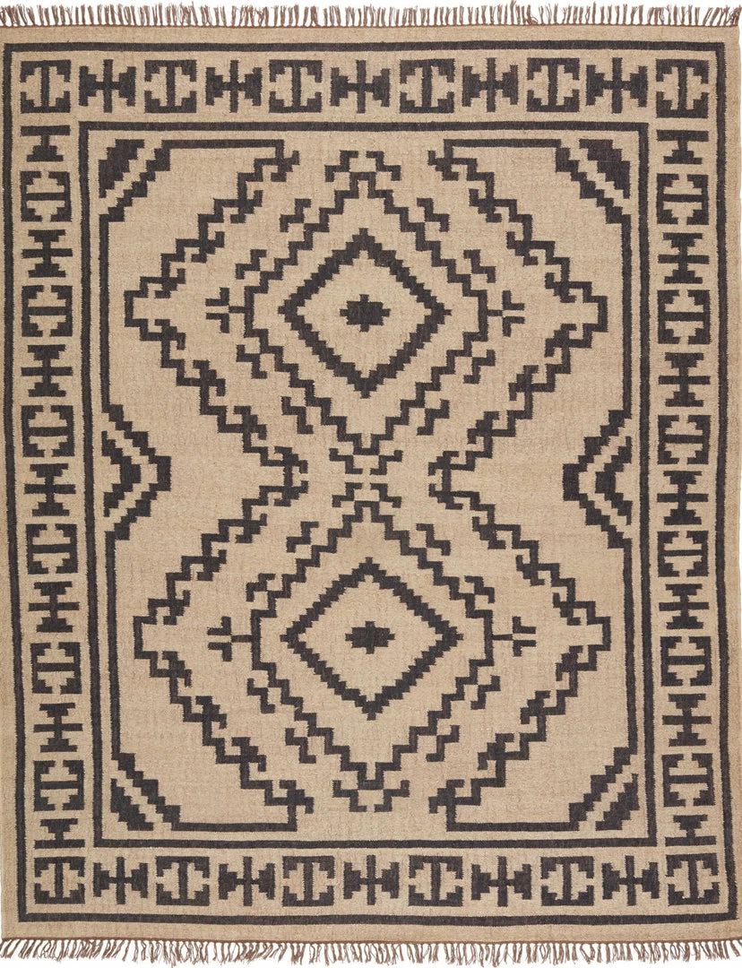The globally inspired Bedouin collection features an assortment of Southwestern styles that are designed for the contemporary home. The handwoven Jaima rug offers a fresh take on a bold and open tribal medallion in easy-to-decorate colors of light beige and deep black. Crafted of durable and texture-rich jute, this natural, flatweave rug grounds spaces and adds a worldly vibe to any room.