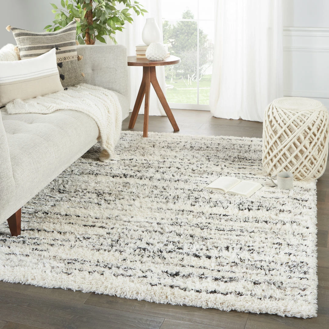 Plush and inviting, the shaggy Izara collection melds modern appeal and a chic neutrality. The Iryna area rug is a wonderful accent of texture and subtle color variation for any space, grounding the room with an ombre design that fades from versatile greige tones to cream. Power loomed of durable and virtually shed-free polyester, this lustrous rug boasts an incredibly soft and indulgent feel.