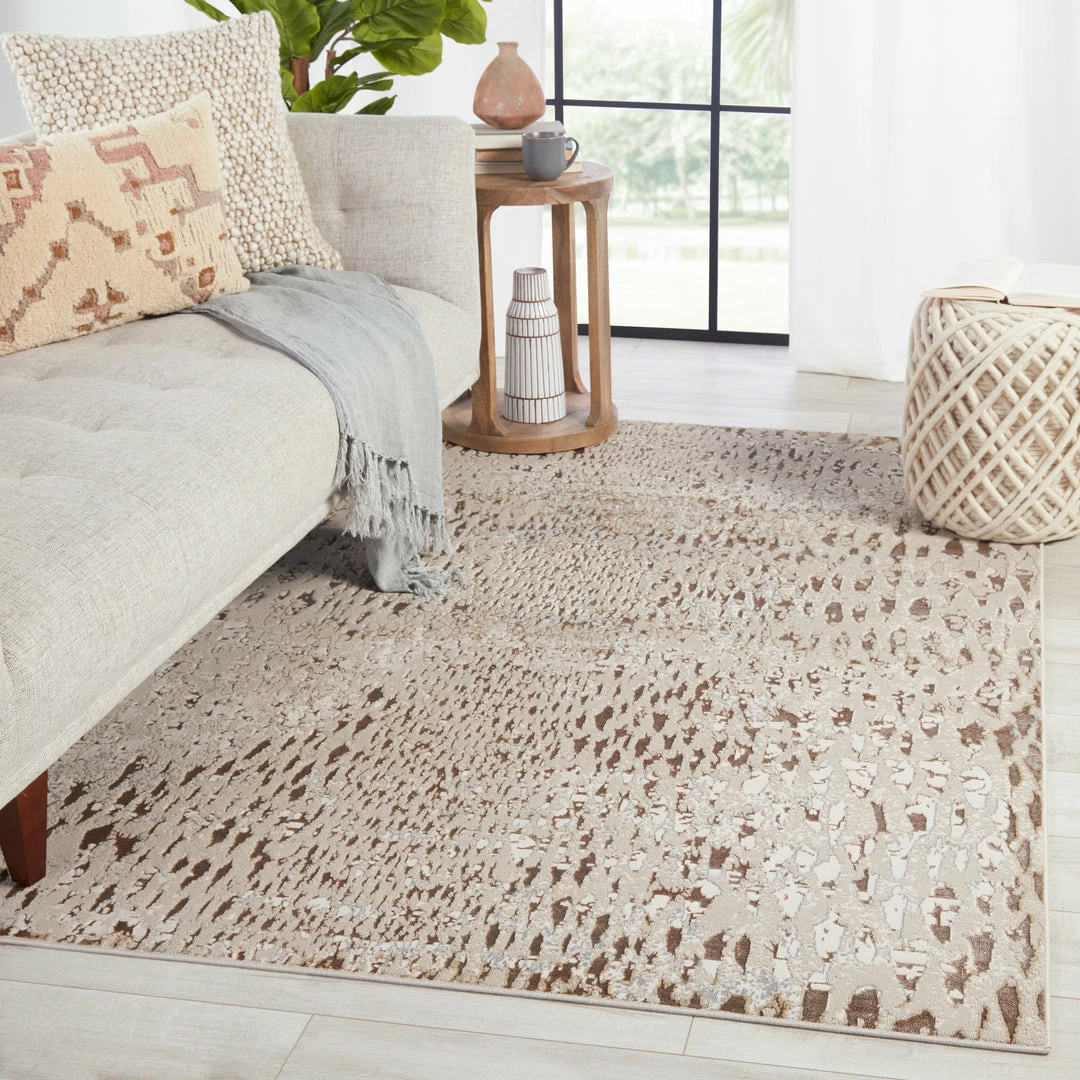 The Malilla by Nikki Chu showcases a glamorous, eye-catching sheen that boldly complements the globally inspired motifs. The captivating leopard print design of the Kimball rug anchors a space with patterned panache, while the neutral beige, gray, and bronze color offers a grounding tone to any style decor. This power-loomed rug features metallic polyester fibers blended with stain-resistant polypropylene for a brilliant luster from various perspectives.