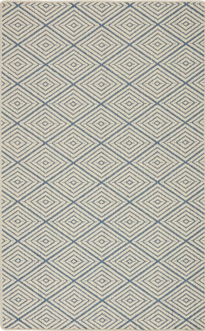 The Newport collection by Barclay Butera features abstract and geometric patterns with a modern, coastal vibe. Pacific, a wool and sisal area rug, showcases a classic blue and white colorway. This handwoven rug boasts a grounding texture of natural grass fibers that is softened and elevated durable wool.