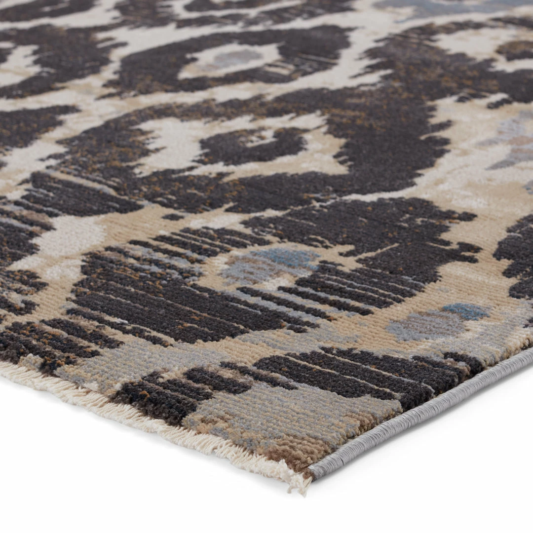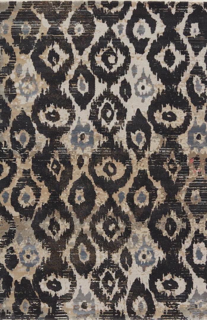 Inspired by the African motifs, the Sanaa collection by Nikki Chu is the perfect combination of statement-making patterns and easy-to-decorate-with hues. The Livio rug boasts a perfectly distressed ikat-inspired design in tones of black, gray, tan, beige, and hints of pink. Ivory fringe trim adds texture and vintage allure. This power-loomed rug features a plush and durable blend of polyester and polypropylene, lending the ideal accent to high-traffic spaces.