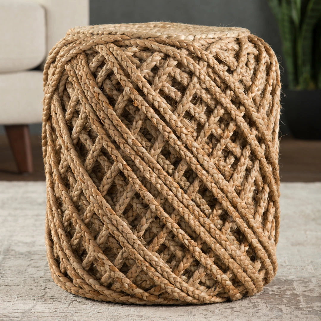 A sculptural design with a soft impression, this cylinder pouf creates modern intrigue in living spaces and bedrooms. Cross-hatched thick strands of felted wool yarn provide eye-catching Scandinavian-inspired style.