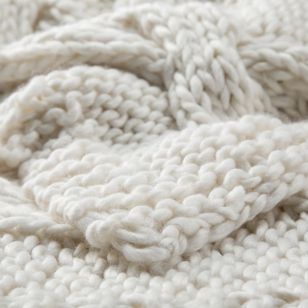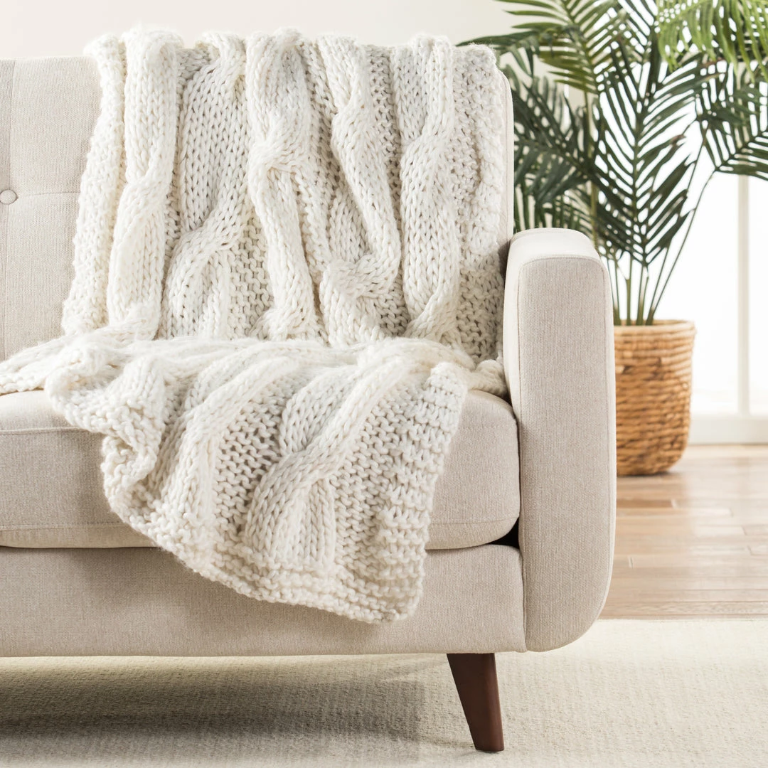 As classic as a cozy sweater, this stunningly soft ivory throw blanket accents beds and sofas with handcrafted charm. The jacquard-knit wool and acrylic design makes an incredibly comfortable impression in traditional spaces.