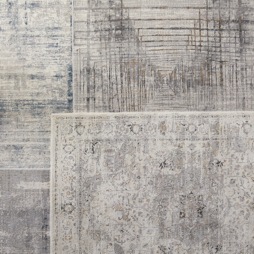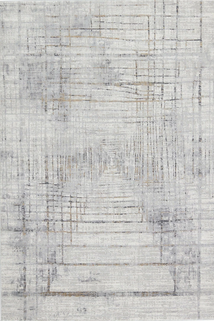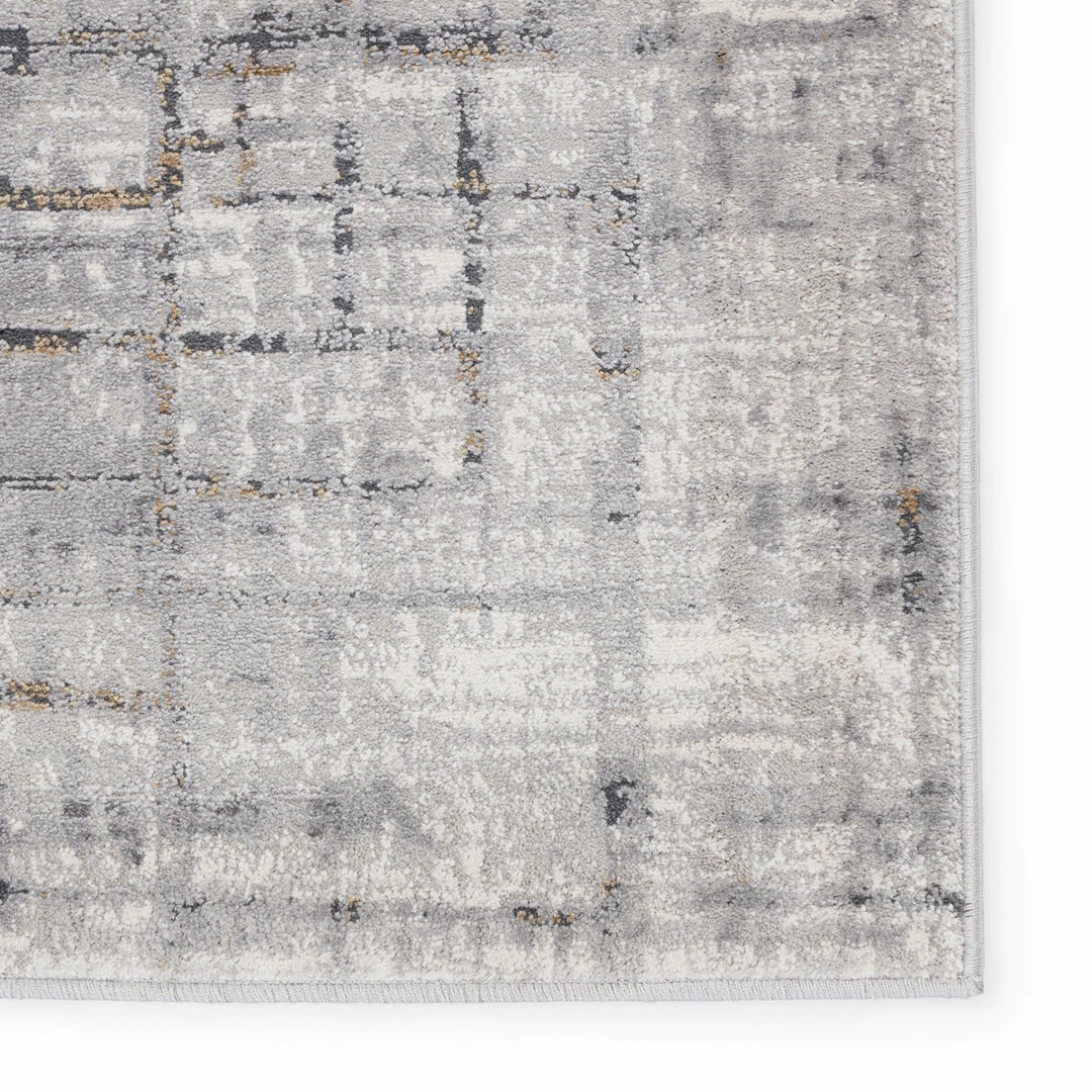 Inspired by both classic motifs and contemporary art, the Solace collection features transitional designs in soft, calming colorways. The Toril area rug showcases an dynamic abstract design in serene, relaxed hues of gray, ivory, and subtle hints of gold. Made to withstand heavy foot traffic and lived-in spaces, this power-loomed polypropylene rug boasts texture-rich high-low pile.