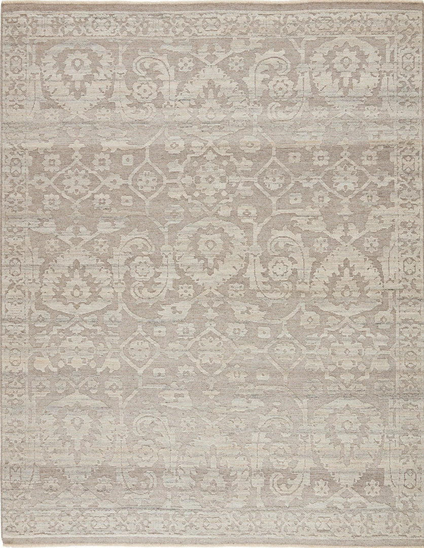 The richly textured and elegantly designed Sonnette collection combines an inviting, soft hand and eye-catching transitional style. The Riona rug boasts a neutral palette of light taupe and gray that creates beautiful dimension among the brocade design. This hand-knotted wool rug features fringe trimmed details for a touch of global charm.
