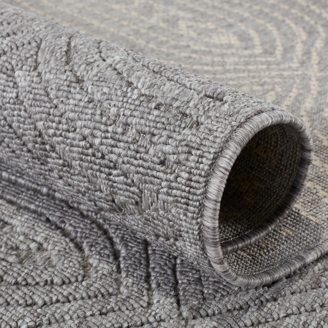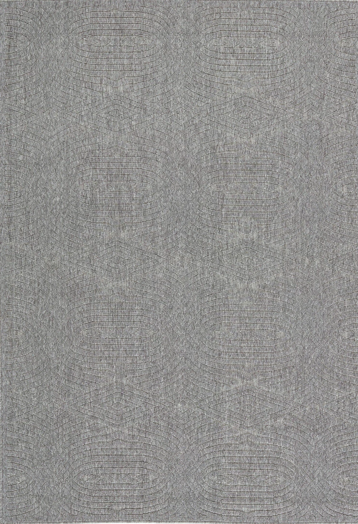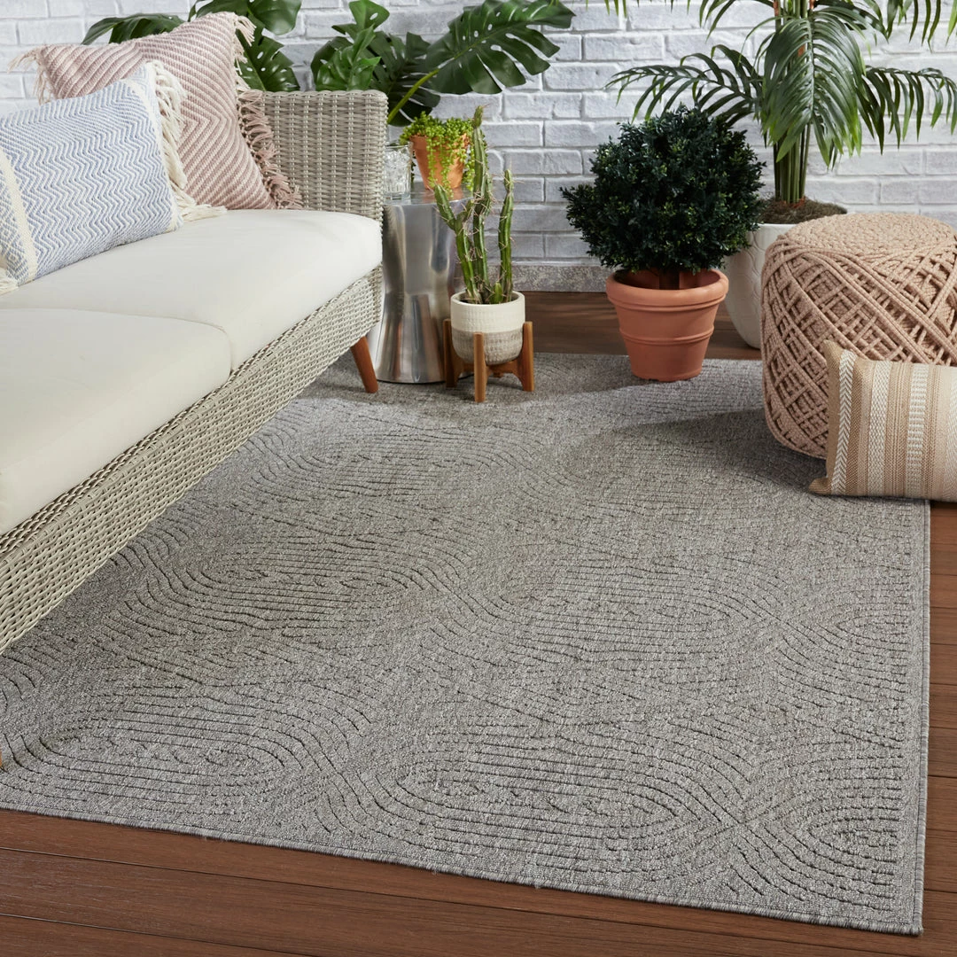 The bold yet perfectly versatile Tajiri collection by Nikki Chu pairs perfectly with outdoor seating and dining sets. Large-scale global motifs make a statement, while the neutral colorways anchor any space. The light gray Ekon rug features a captivating repeat pattern with linear details. A combination of looped and flatwoven polypropylene pile adds depth and dimension, not to mention a durable layer underfoot.