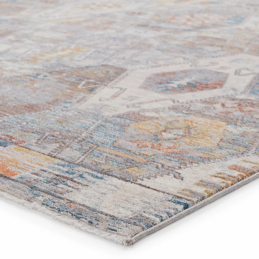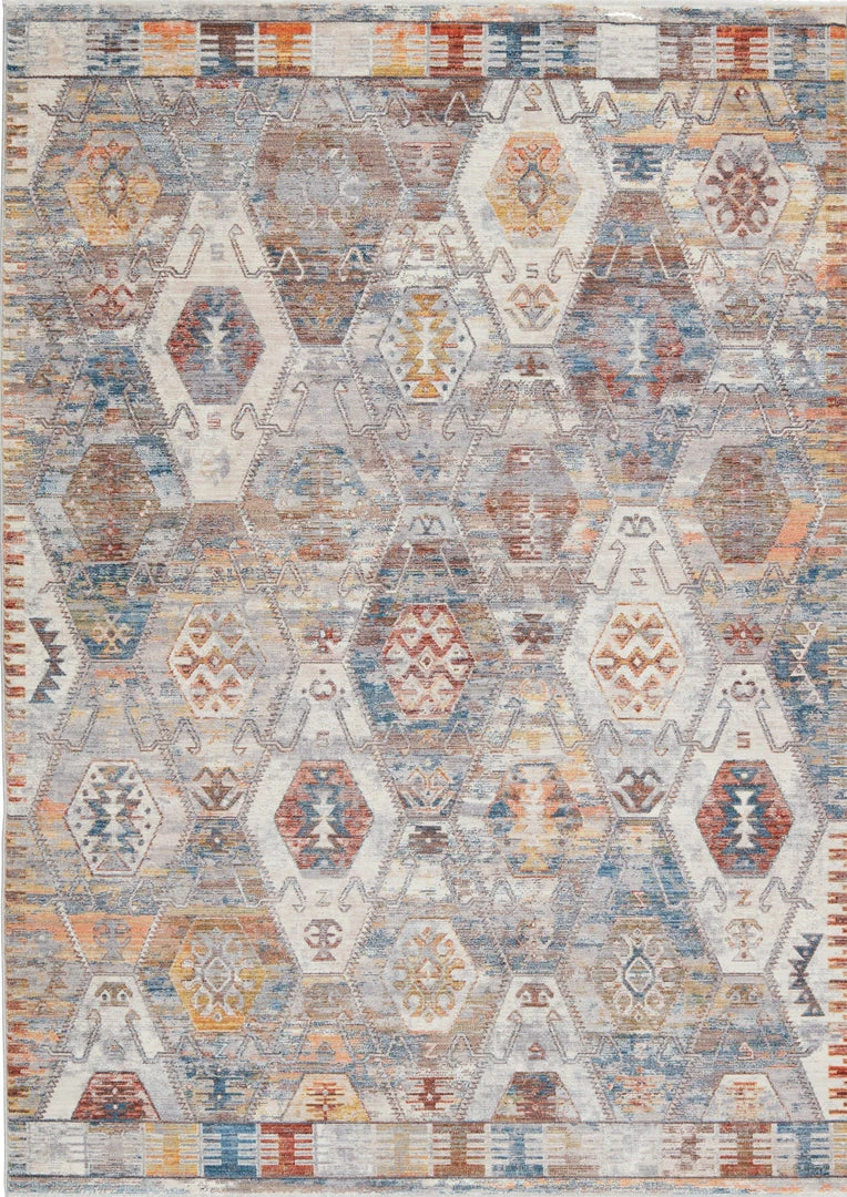 A complementary mix of vibrant and natural tones combine to create the effortlessly stylish Terra collection. Space-dyed polyester lends a unique colorway and subtle, dimensional sheen to the stunningly detailed design. The eye-catching and vintage-inspired Strata rug offers a pattern-rich accent with a geometric trellis motif in mixed hues of gray, blue, yellow, orange, and deep plum.
