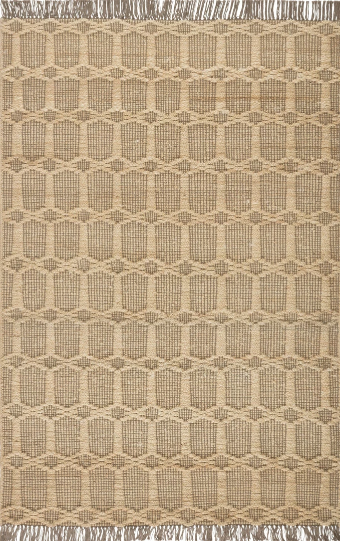 The Thierry area rug from the Westerly collection brings a relaxed, natural look to transitional spaces. The hand-loomed jute and cotton construction of this textured rug grounds spaces with an earthy taupe and tan lattice design. The cotton fringe lends a hint of global charm.