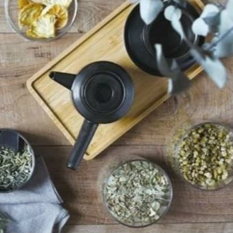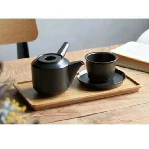 Bamboo tray with a lip around the edge for easy lifting and carrying and a urethane coating that both resists spills and prevents slipping.