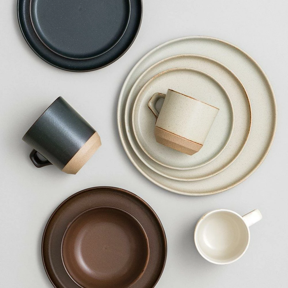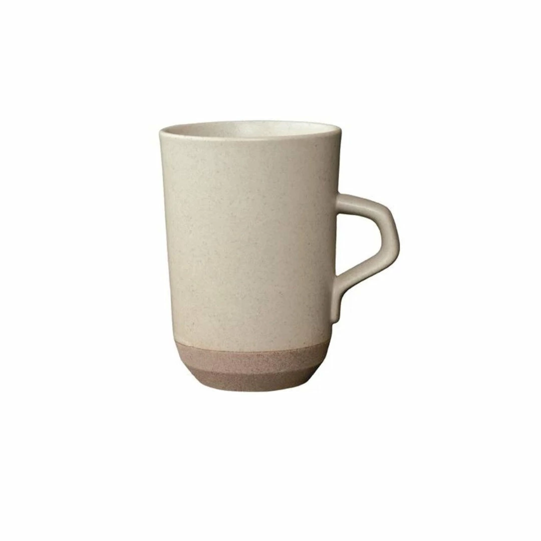 This series of mugs has a humble yet dignified character. The natural texture of the clay peeks out at the base below a layer of calm colored glazing, the edges are reminiscent of quarried stone. The handle is designed to comfortably fit your fingers and shaped to accent the smooth material. The wide mug is perfect for a latte.