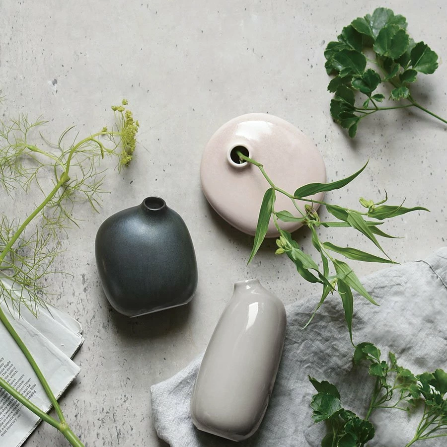 A single-flower vase with playful and organic form, you can enjoy pairing various flowers and plants with SACCO. The mouths which are at different angles create interesting motion, highlighting the lively and delicate expressions of plants. The compact size makes it easy to incorporate into various interior spaces.