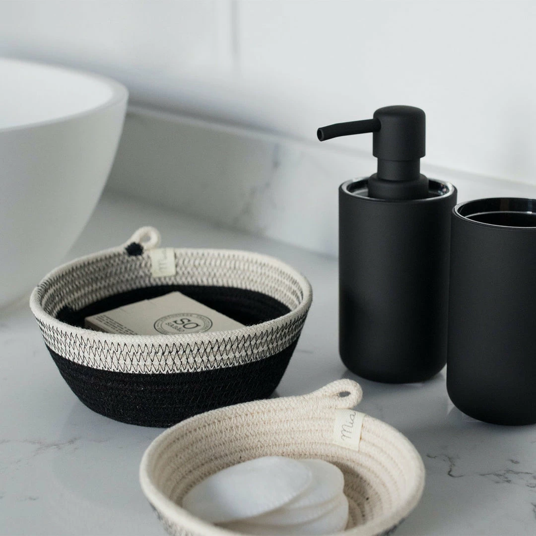 The bowls are made from 100% cotton rope which are carefully sewn together in a coiling technique. The cotton is grown locally to the manufacturing in South Africa by farmers who are members of the Better Cotton Initiate (BCI).