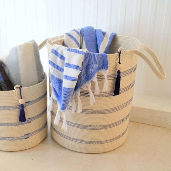 These stylish floor baskets are tall and come with long handles for easy carrying. They can be used to store a variety of things: laundry, blankets, towels, scatter cushions, etc. They can also be used in children’s nurseries to store toys neatly.