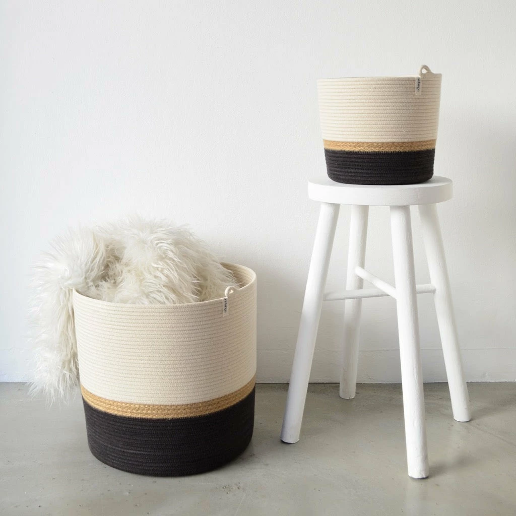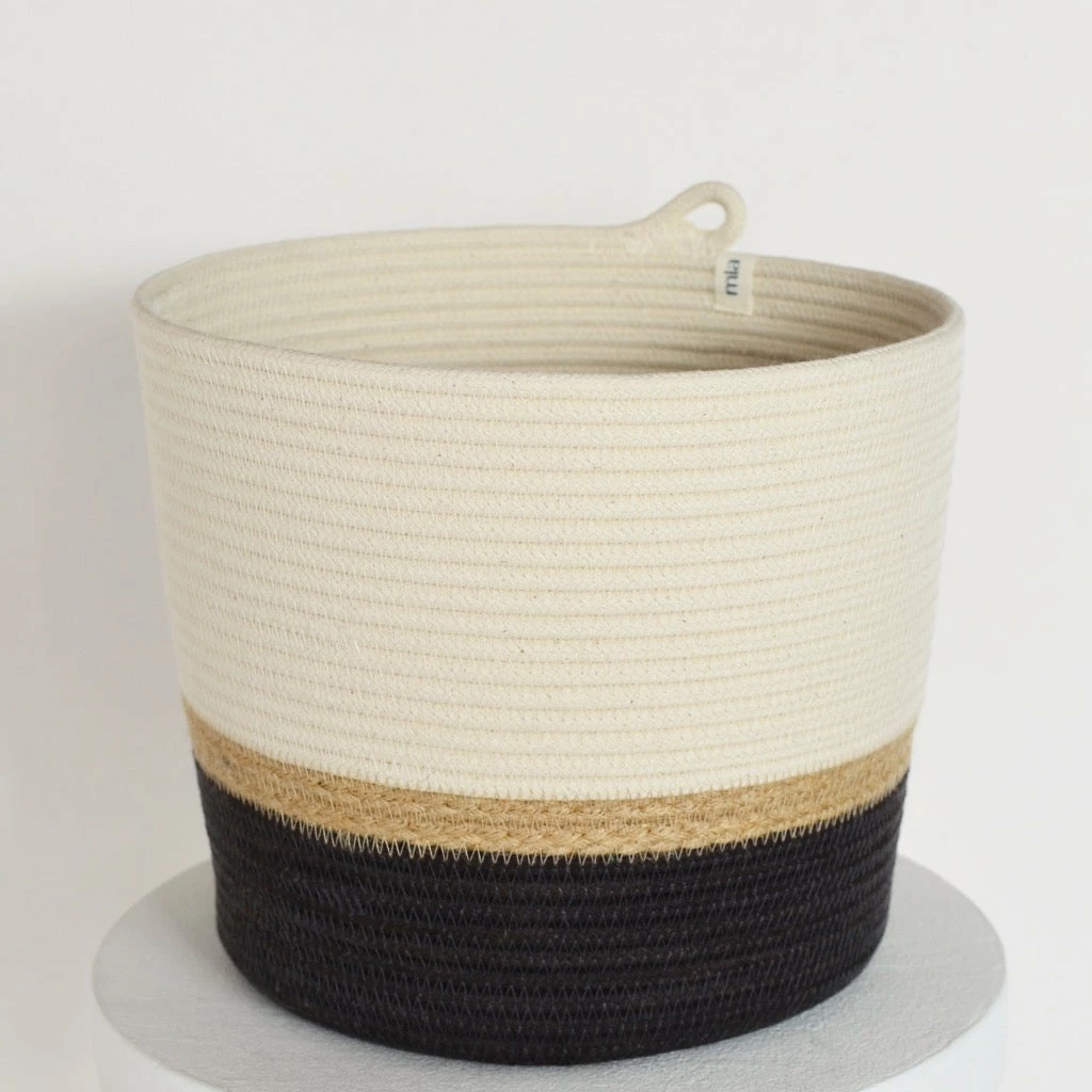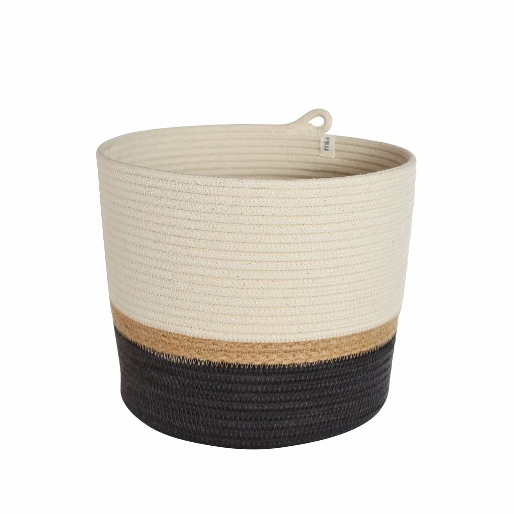 These Mia Mélange baskets are made from 100% cotton rope, combined with jute, which we carefully sew together in a coiling technique. The cotton is grown locally in South Africa by farmers who are members of the Better Cotton Initiative (BCI).