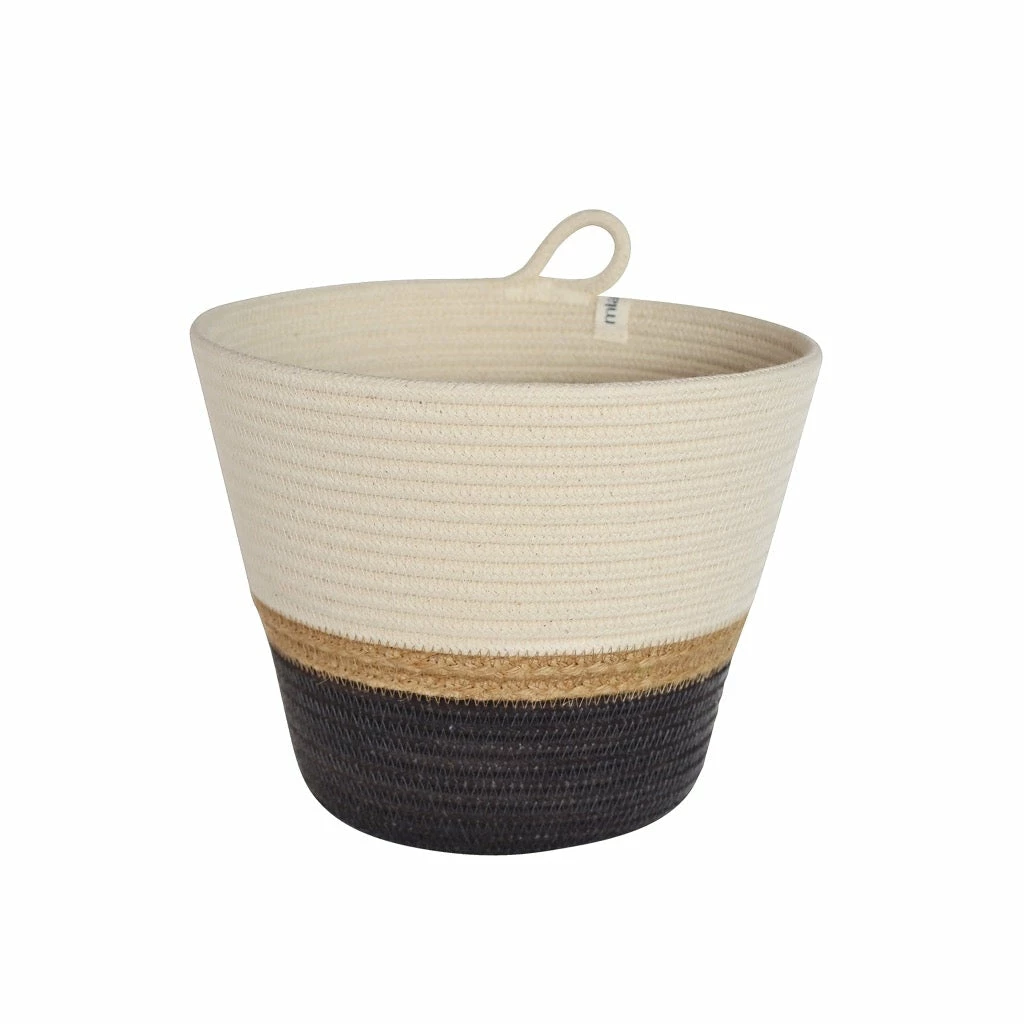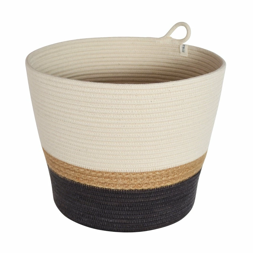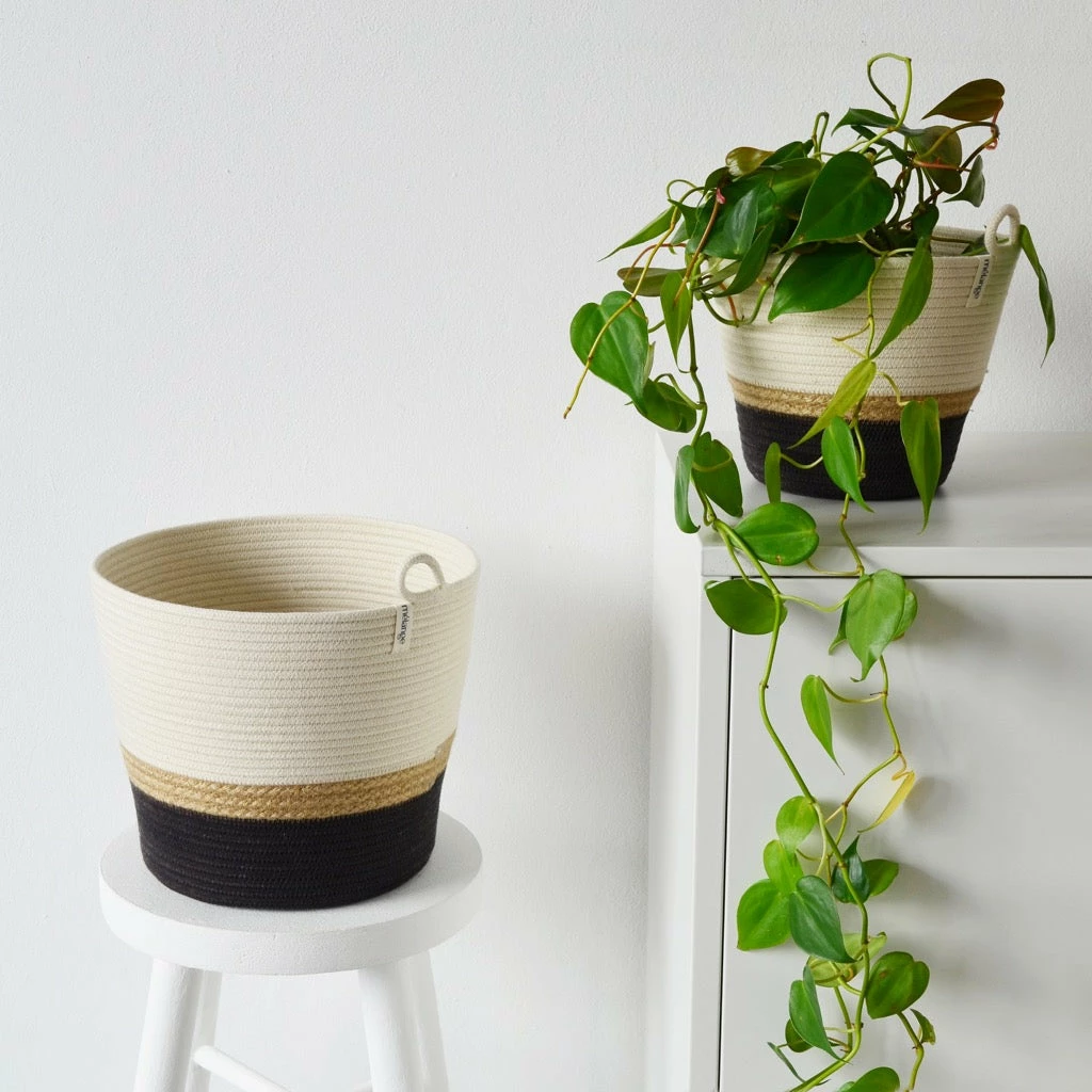 These Mia Mélange bowls are made from 100% cotton rope, combined with jute, which we carefully sew together in a coiling technique. The cotton is grown locally in South Africa by farmers who are members of the Better Cotton Initiative (BCI).