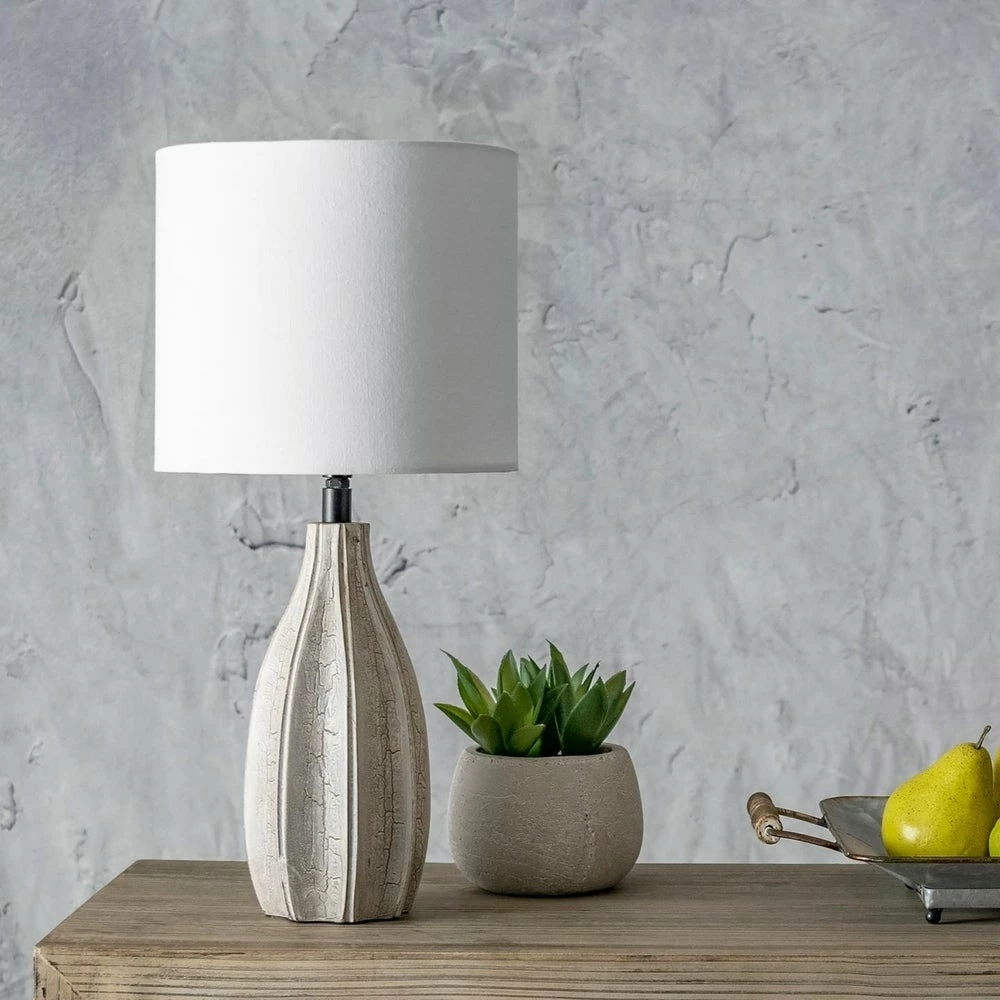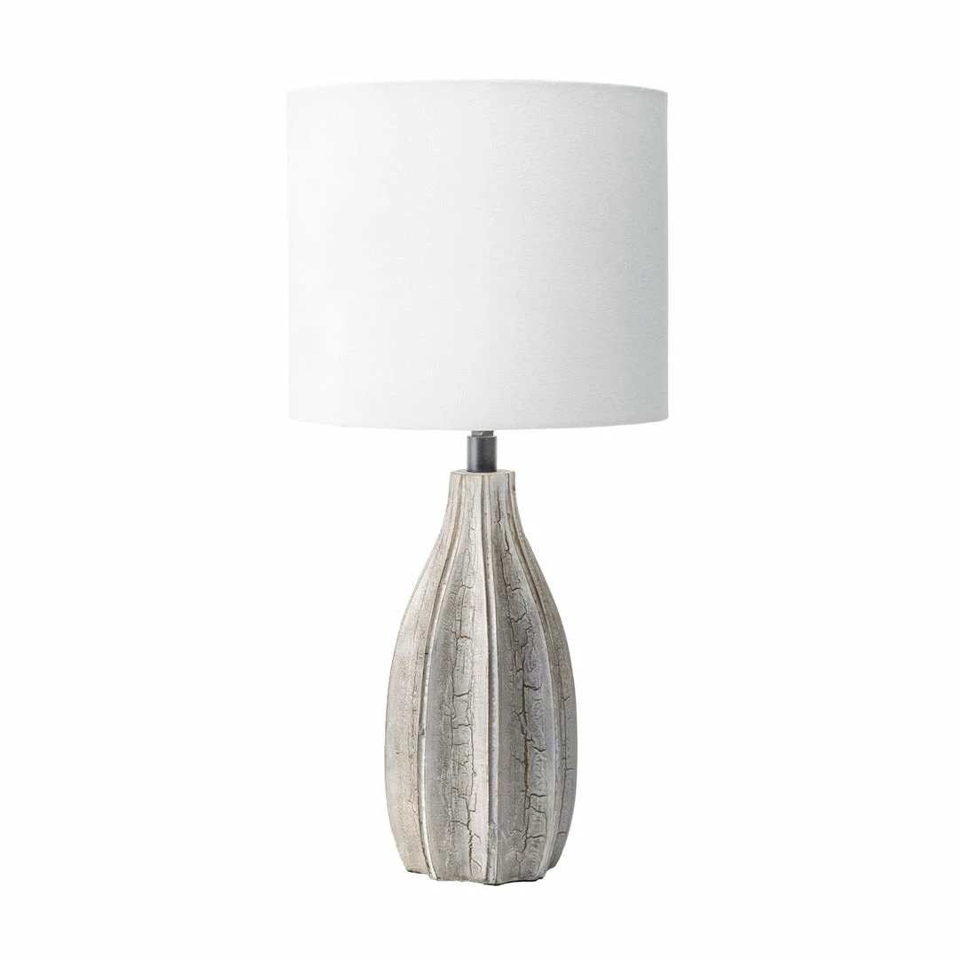 With its ribbed design, this table lamp puts a dimensional spin on an otherwise simple form. Grunge detailing on its small stature makes this a visually intriguing addition to your desk or bedside.